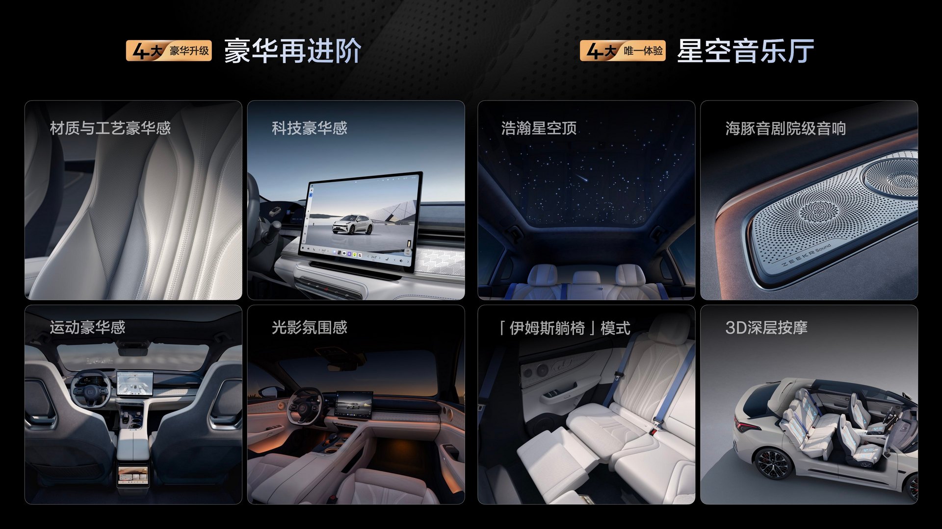 Мультимедийная система предусматривает центральный дисплей на 16 дюймов, проекционный экран с видимой диагональю изображения 39,3 дюйма и до 29 динамиков. Наконец, пятидверку обещают укомплектовать особо комфортными сиденьями с широким диапазоном регулировок и улучшенным массажем, а также набором водительских помощников на основе чипа Thor-U с вычислительной мощностью 700 ТОПС.