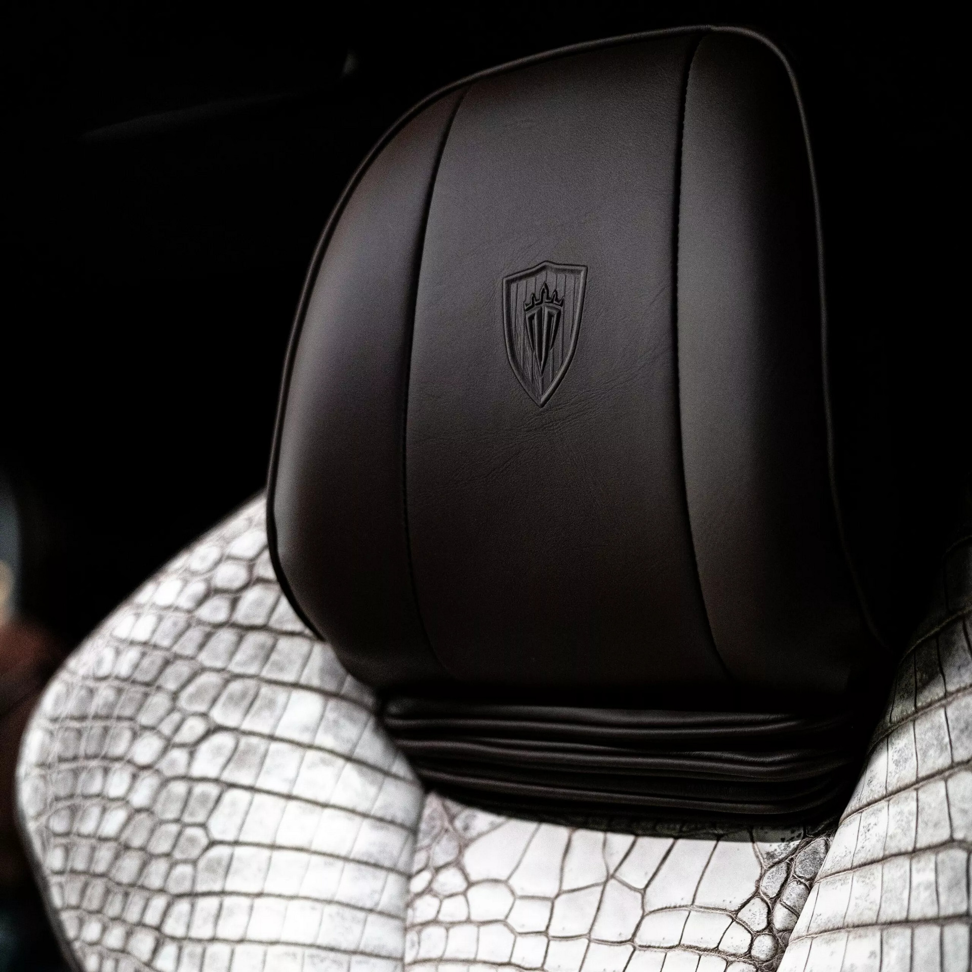 Помимо особой краски, кузову достался широкофюзеляжный обвес с расширителями арок, легкосплавными дисками в стиле ретро, иной решёткой радиатора и хромированными вставками в передний бампер. Салон с нуля перетянули эксклюзивной крокодильей кожей Himalaya, более традиционной кожей белого и коричневого цветов и искусственной замшей.