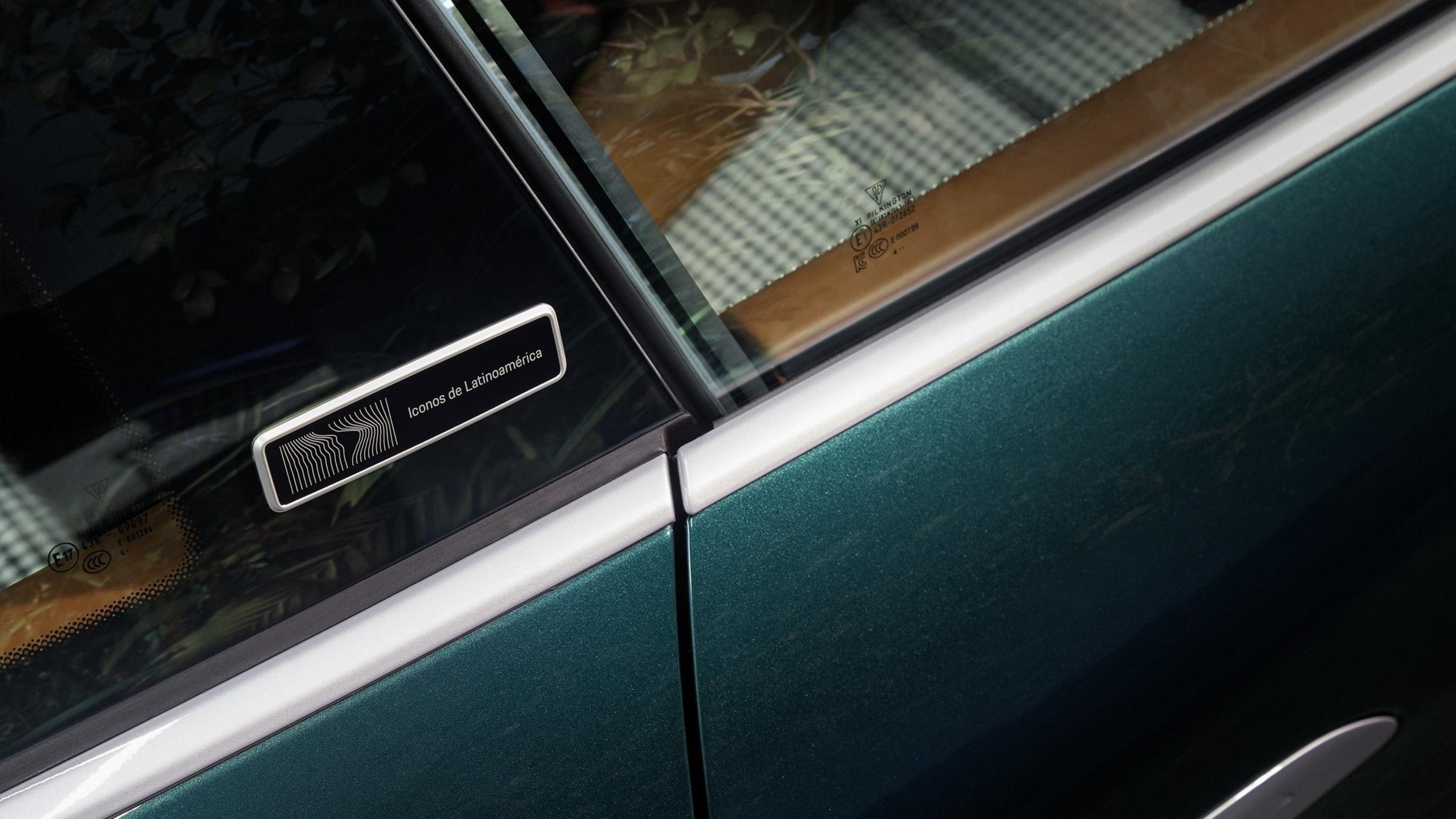 Салон отделали светло-коричневой кожей и классической тканью Pepita с коричнево-черно-белым рисунком. Стилисты при выборе оттенков ориентировались на расцветку шерсти оцелота, отличающуюся пятнистым узором. Дизайн изображения на подголовниках подсмотрели у дорожных знаков в Колумбии: их ставят там, где оцелоты нередко появляются на проезжей части.