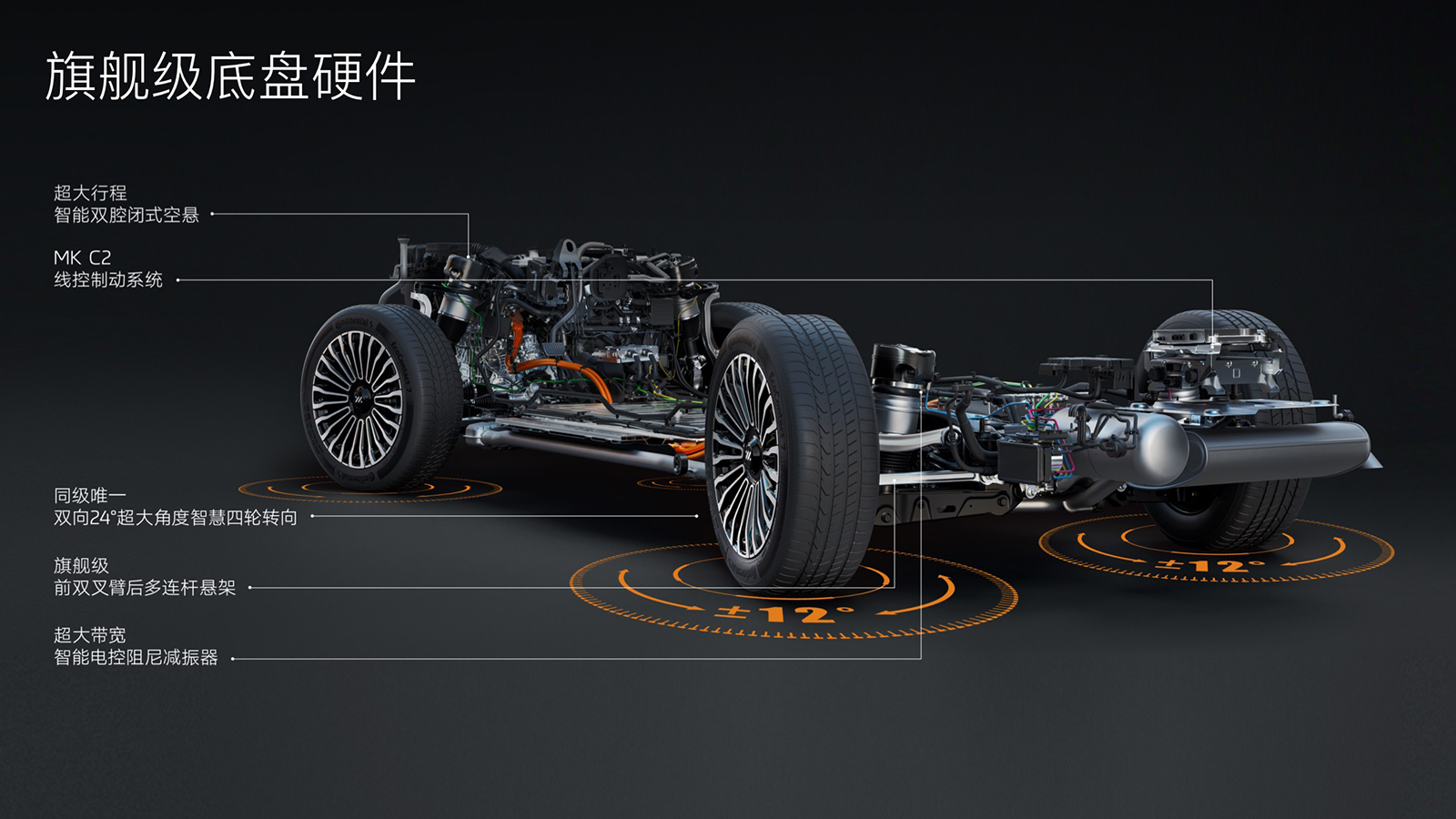При размерах 5279х2000х1806 мм новинка получила колесную базу 3160 мм, но за счет полноуправляемого шасси радиус разворота составляет не более 5 м. Машина оснащена гибридной системой с электродвигателями отдачей 530 л.с. и 670 Нм и может разогнаться до ста за 4 с. Пробег на чистом электричестве достигает 402 км, суммарная дальнобойность – 1508 км.