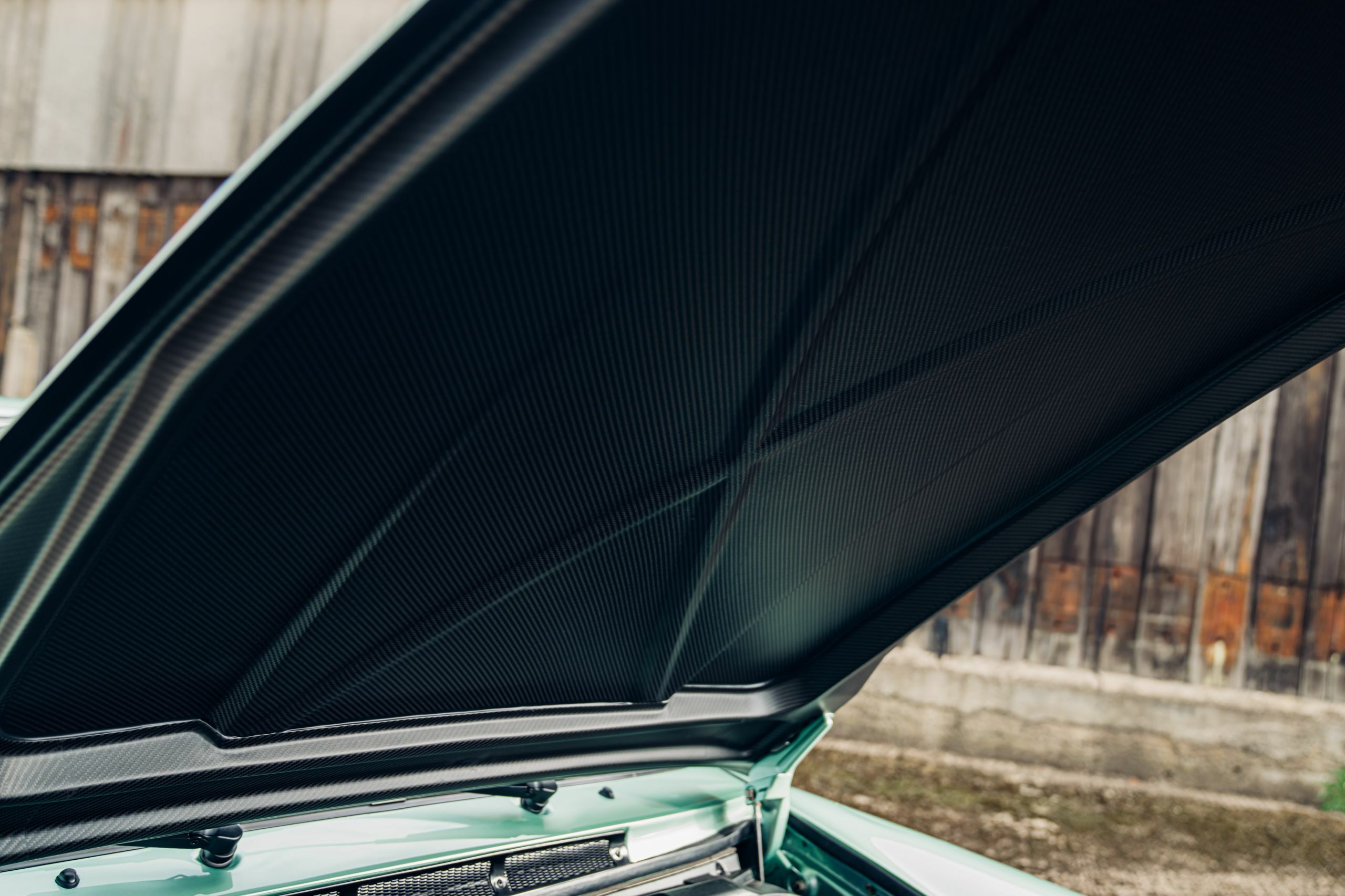Кузов полностью разобран и усилен. Для снижения массы наружные панели изготовили из углепластика. В интерьере появились отделанные алькантарой «ковши» Recaro с карбоновым каркасом и акустика Alpine.