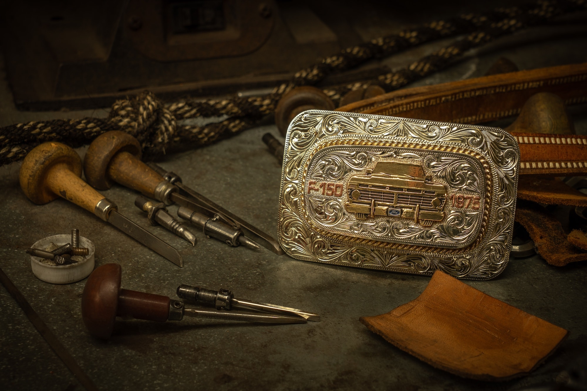Пряжку создала небольшая мастерская Cut Above Buckles из штата Юта и лично руководитель Энди Эндрюс – фанат Дикого Запада и бывший участник родео. Снаружи ее покрыли гравировкой с изображением лицевой части классического пикапа марки и снабдили числом 1975: это намек на год дебюта F-150.