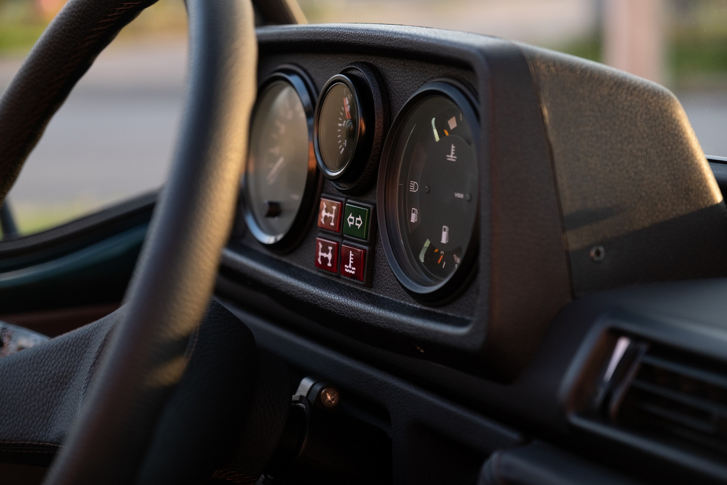 Жесткость кузова лишенного крыши автомобиля поддерживается при помощи дуги над передними сиденьями и полукаркаса безопасности на корме. Ветровое стекло может откидываться на капот. Демо-экземпляр заново окрашен в темно-зеленый цвет, а салон перешит коричневой кожей.