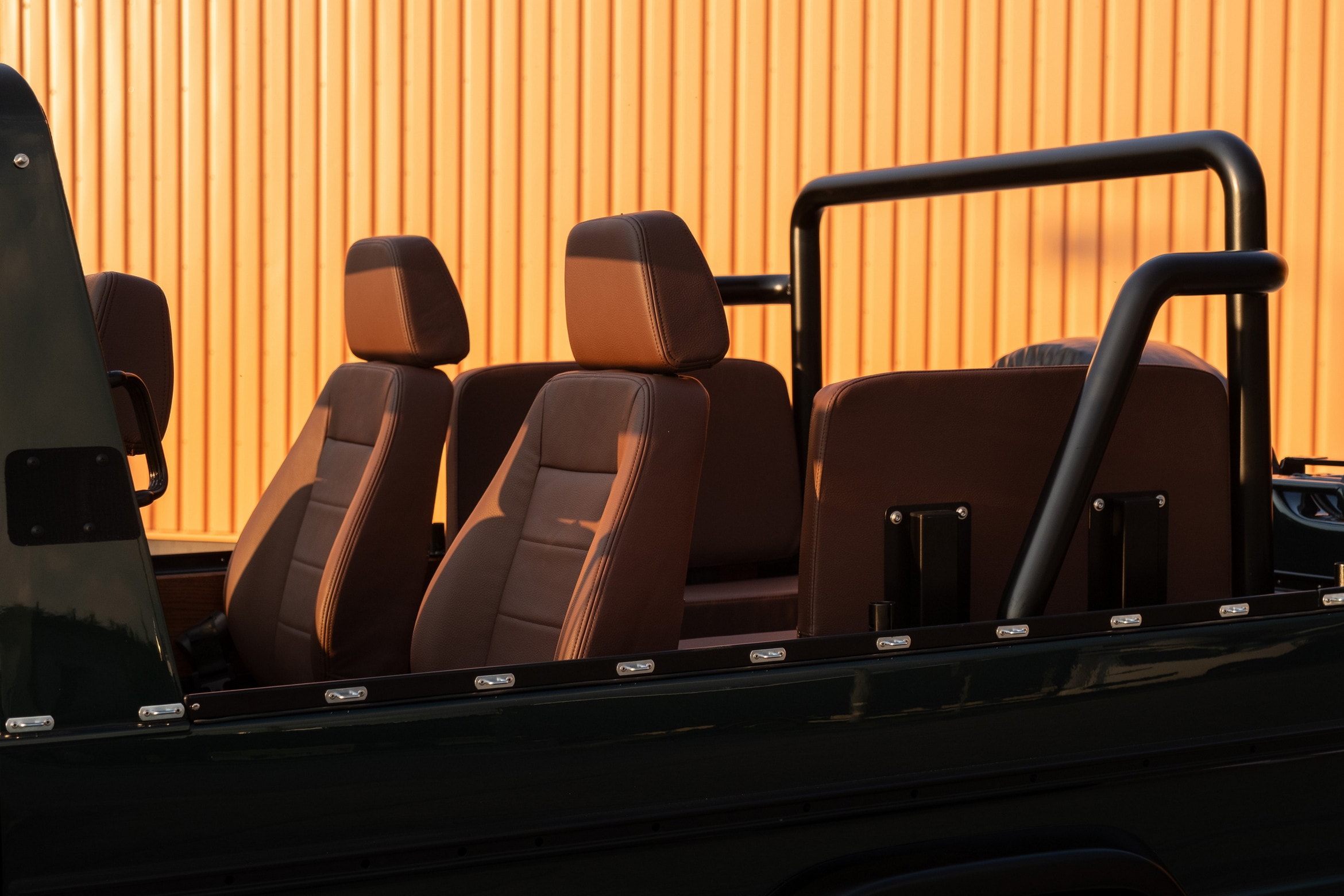Внедорожнику сохранили две боковые двери, но за счет удлинения машины создатели сумели разместить в кузове еще два места. Подробной информации нет, но, судя по фотографиям, седокам второго ряда добавили пространства в ногах. Сзади появилась дополнительная емкость для поклажи – к примеру, для канистры с топливом. Кроме того, применен силовой обвес.
