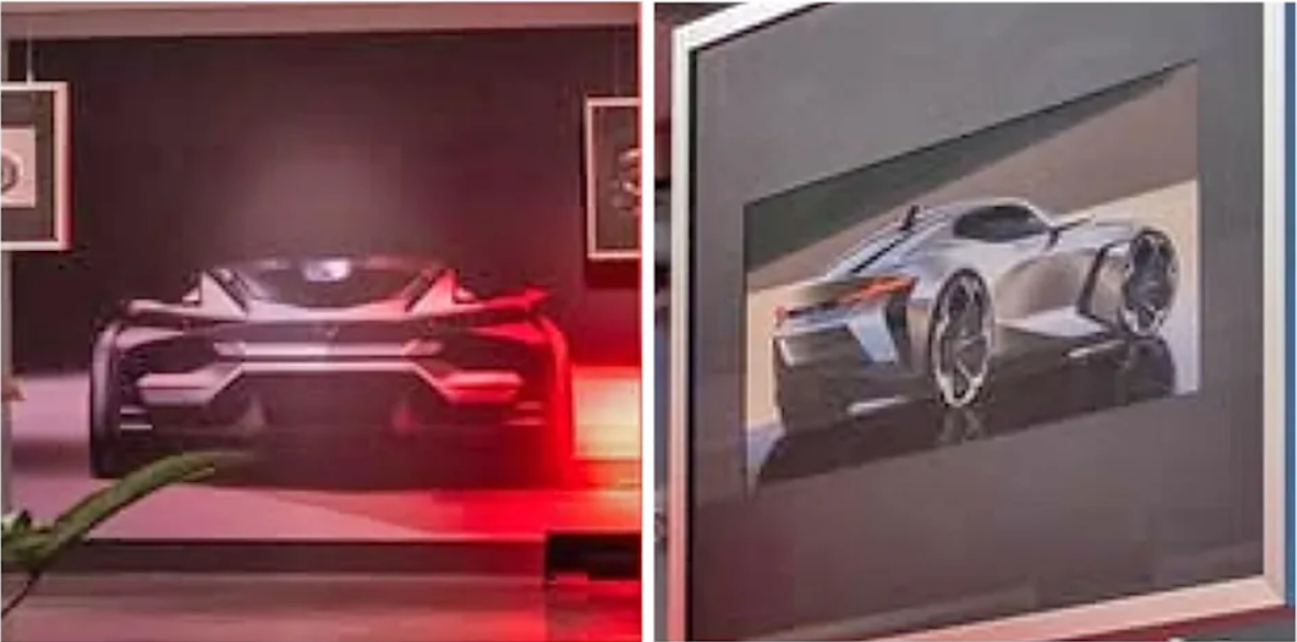 Среди экспонатов СМИ заинтересовались двумя эскизами: на них запечатлены концепт-кары, названия которых не указаны. Один схож со среднемоторным спорткаром, а особенности его дизайна заимствованы у Corvette CX или прототипа California Corvette.