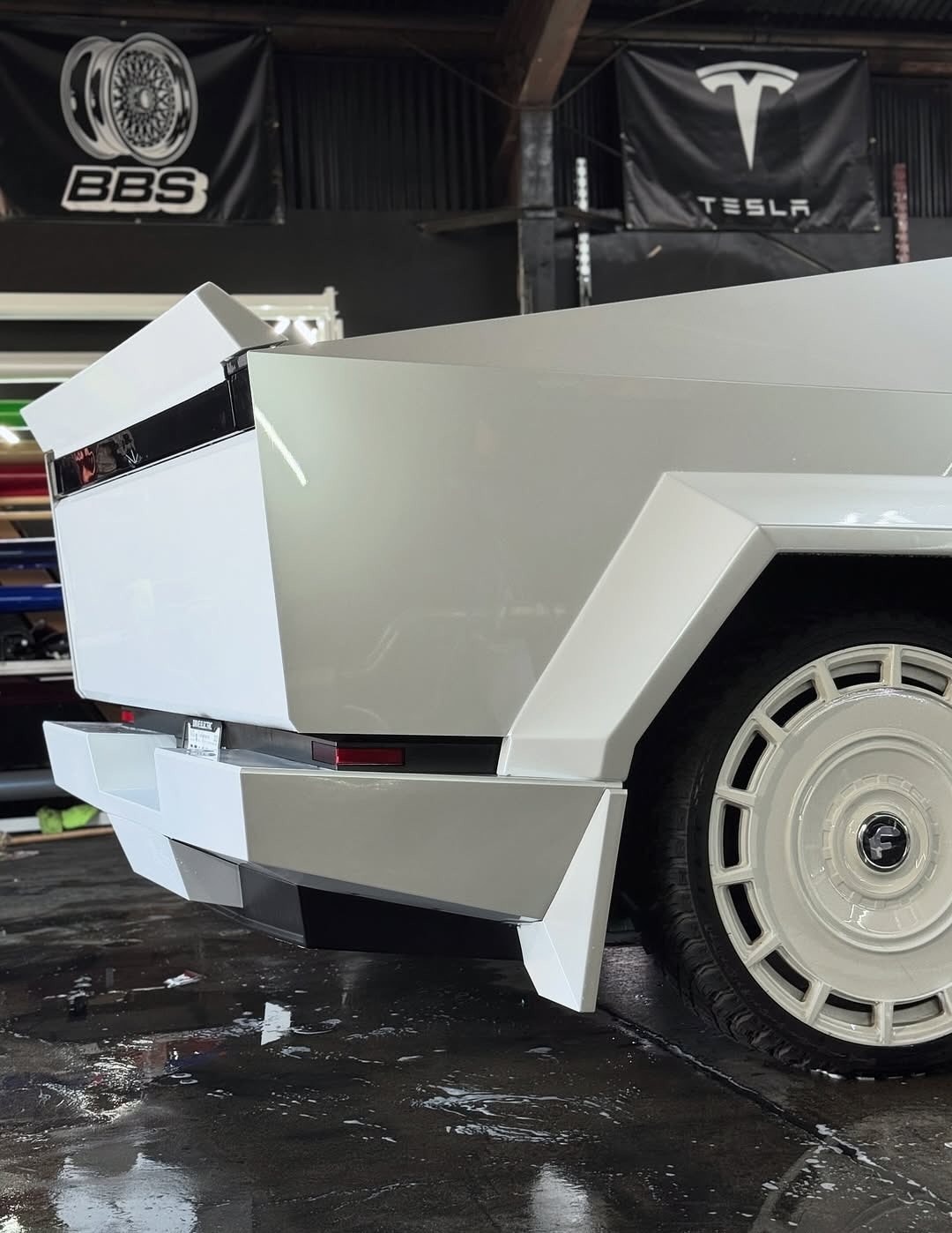 Дополняет образ широкофюзеляжный кузовной обвес с нарочито угловатыми арками, подчёркнуто геометричным рассекателем воздуха спереди и такими же диффузором и антикрылом сзади. Происхождение компонентов не уточняется. Венчают стилизацию матово-белый винил и затемнённая оптика спереди и сзади.