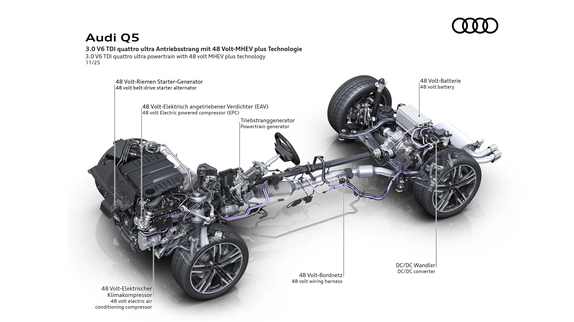 В основу новой модификации лёг трёхлитровый шестицилиндровый дизельный агрегат на 299 л. с. и 580 Нм крутящего момента. Ассистирующий ему стартер-генератор способен непродолжительно увеличить отдачу на 24 «лошадки» и 280 Нм, что особенно полезно при старте и движении в пробках. Батарея неназванного объёма заряжается за счёт рекуперативного торможения.
