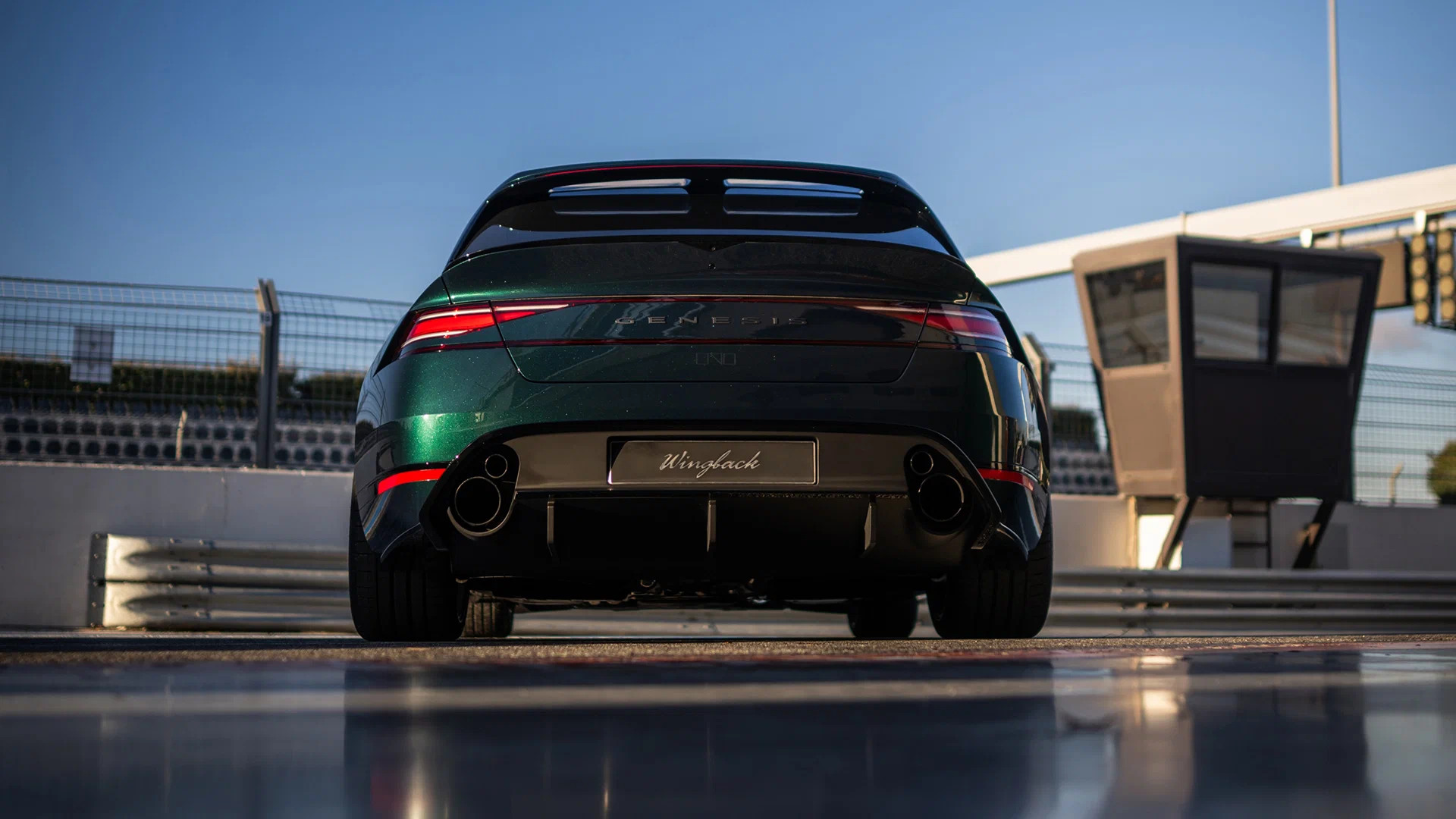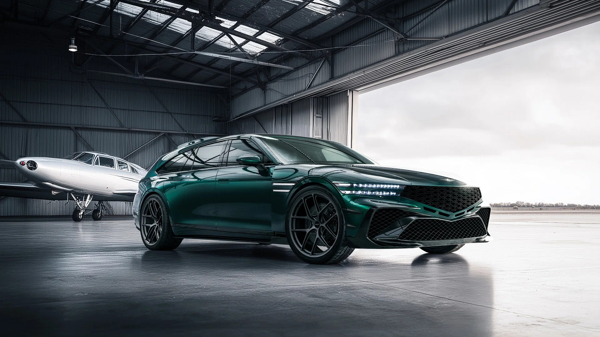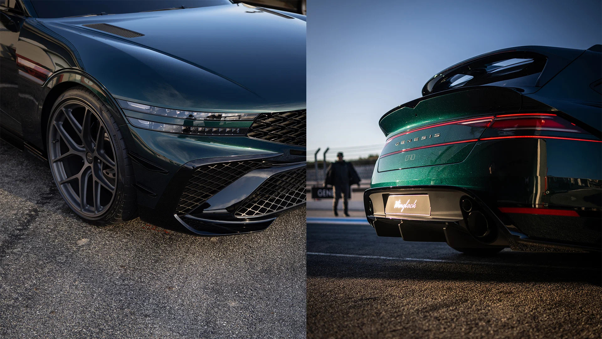 Технически модель унифицирована с Genesis G90 (см. видео), но экстерьер и салон у неё другие. Так, снаружи сразу бросаются в глаза расширенные колёсные арки, иная решётка радиатора и видоизменённый бампер с канардами в спортивной стилистике. Не менее выразительно смотрится и корма с диффузором и парой спойлеров. Дополняют динамичный образ 22-дюймовые кованые «катки».