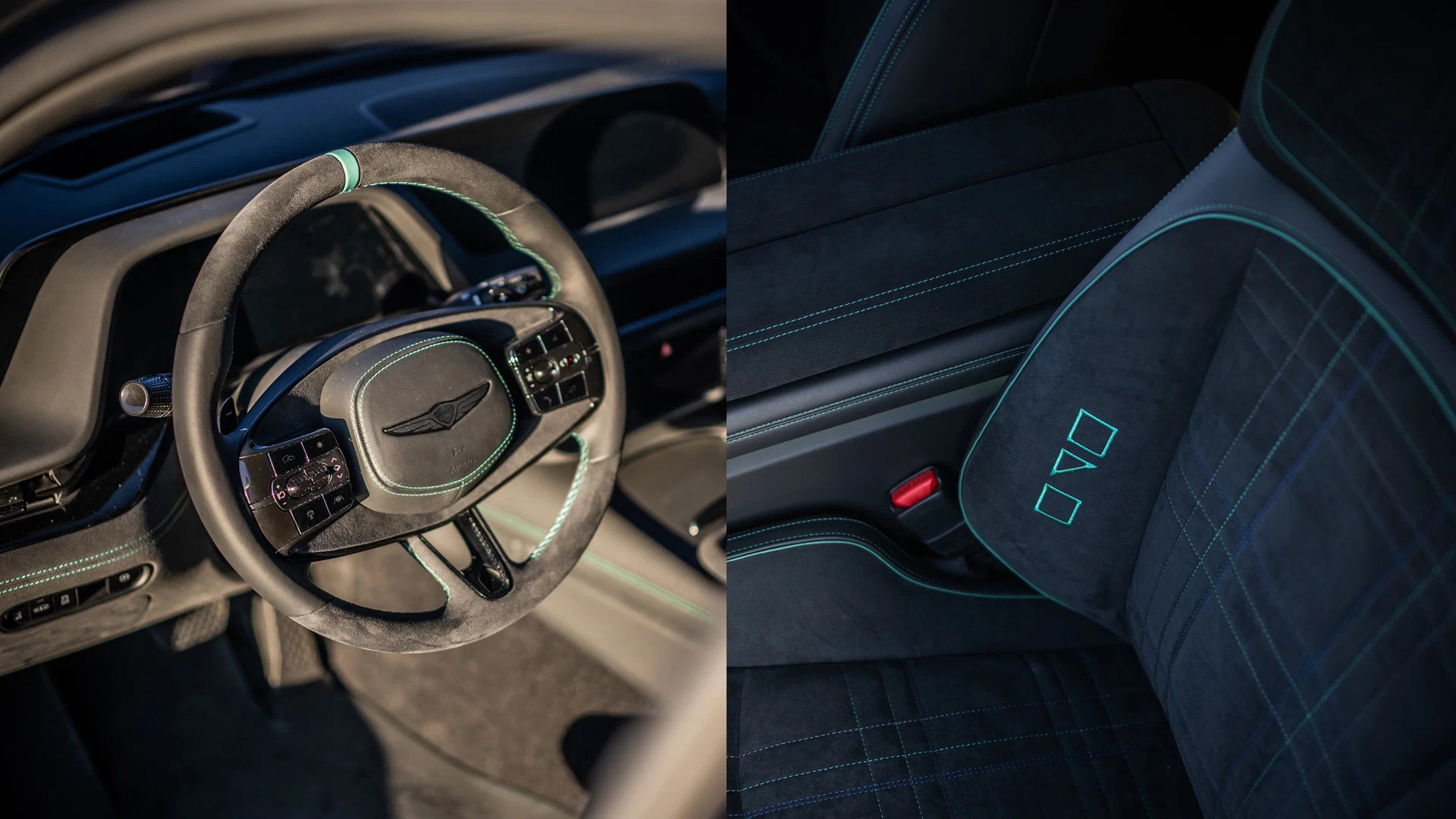 Интерьер показан лишь мельком, но там можно заметить особо эргономичные кресла и отделку искусственной замшей с акцентами в тон кузова.