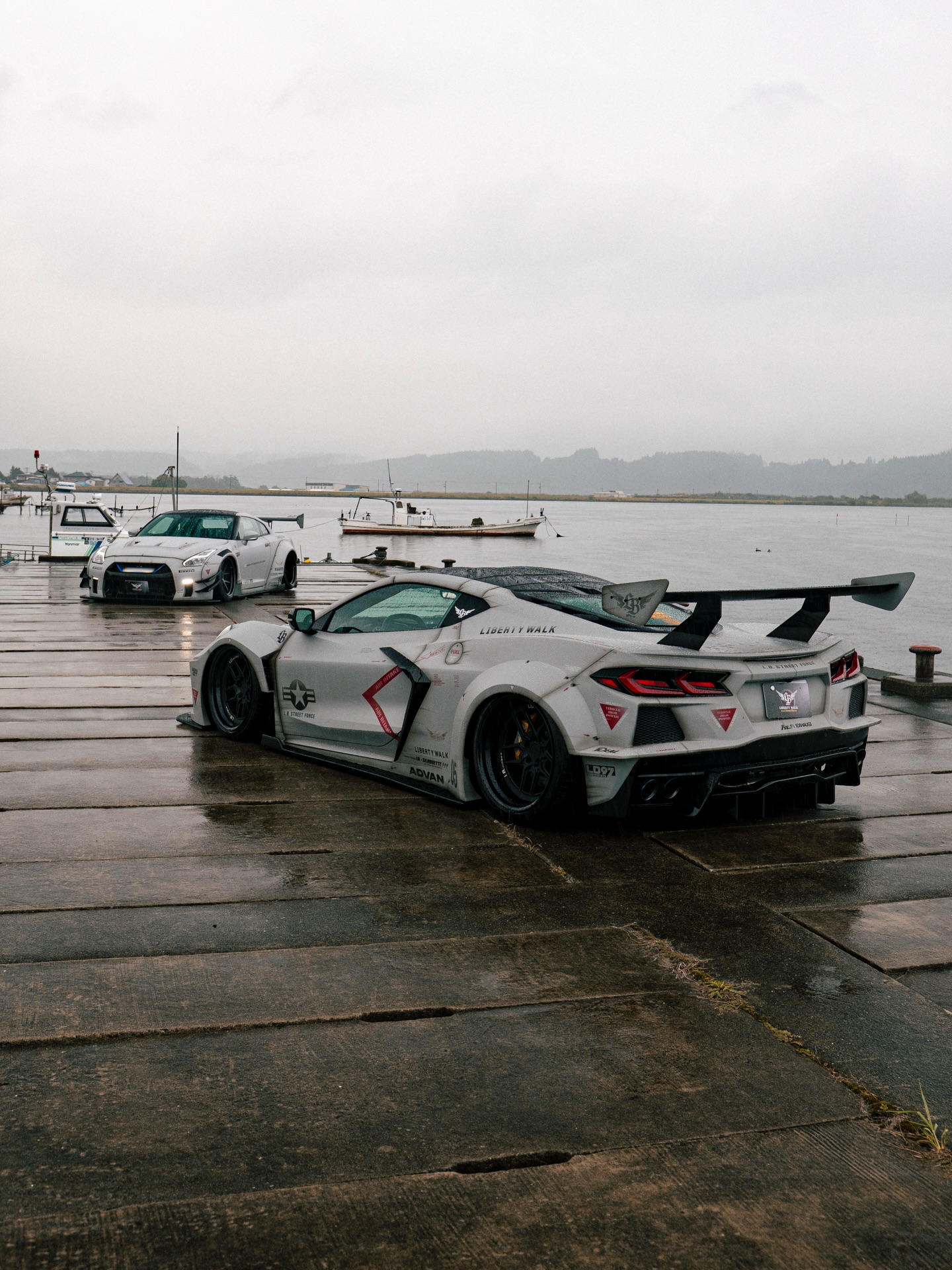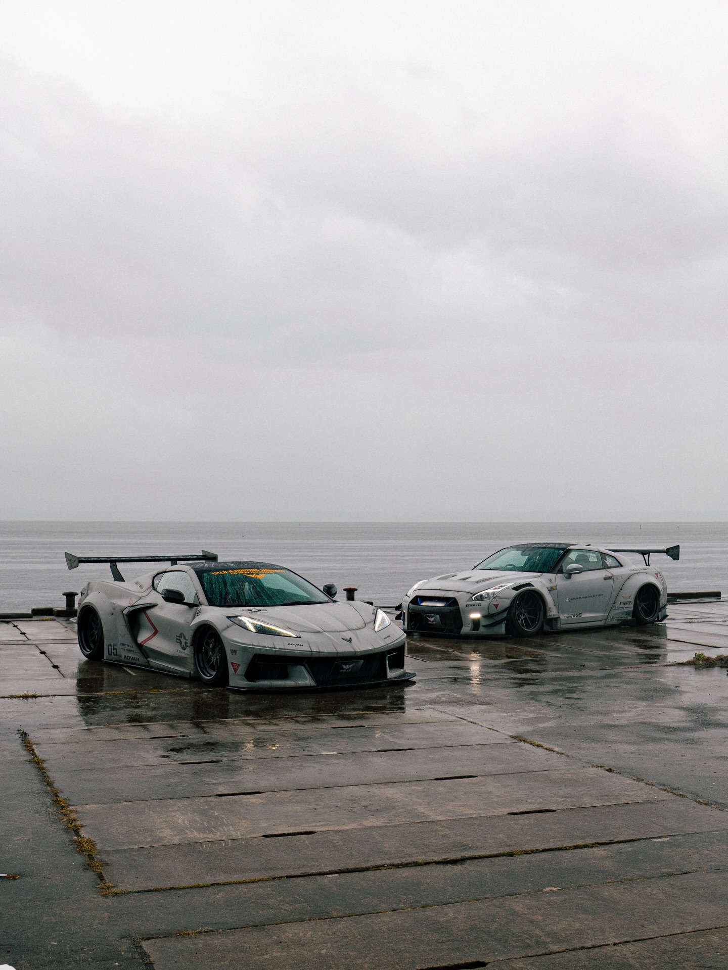 В свою очередь, «Годзилла» может похвастаться капотом с вентиляционными отверстиями и ещё более массивным антикрылом, чем у «Корвета». Оба спорткара сильно занижены и поставлены на фирменные кованые диски в шинах Advan Sport.