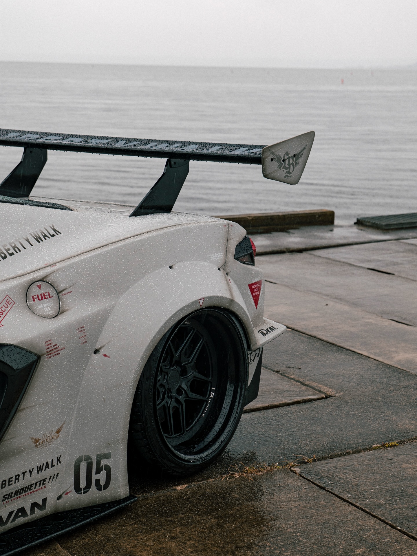 В составе боди-кита – видоизменённый передний бампер, расширенный с учётом новых колёсных арок, низко посаженный углепластиковый «фартук» и гармонирующие с ним боковые юбки. По бокам от бампера виднеются закрылки, а внизу находится рассекатель воздуха. Дополняют образ диффузор и антикрыло сзади.