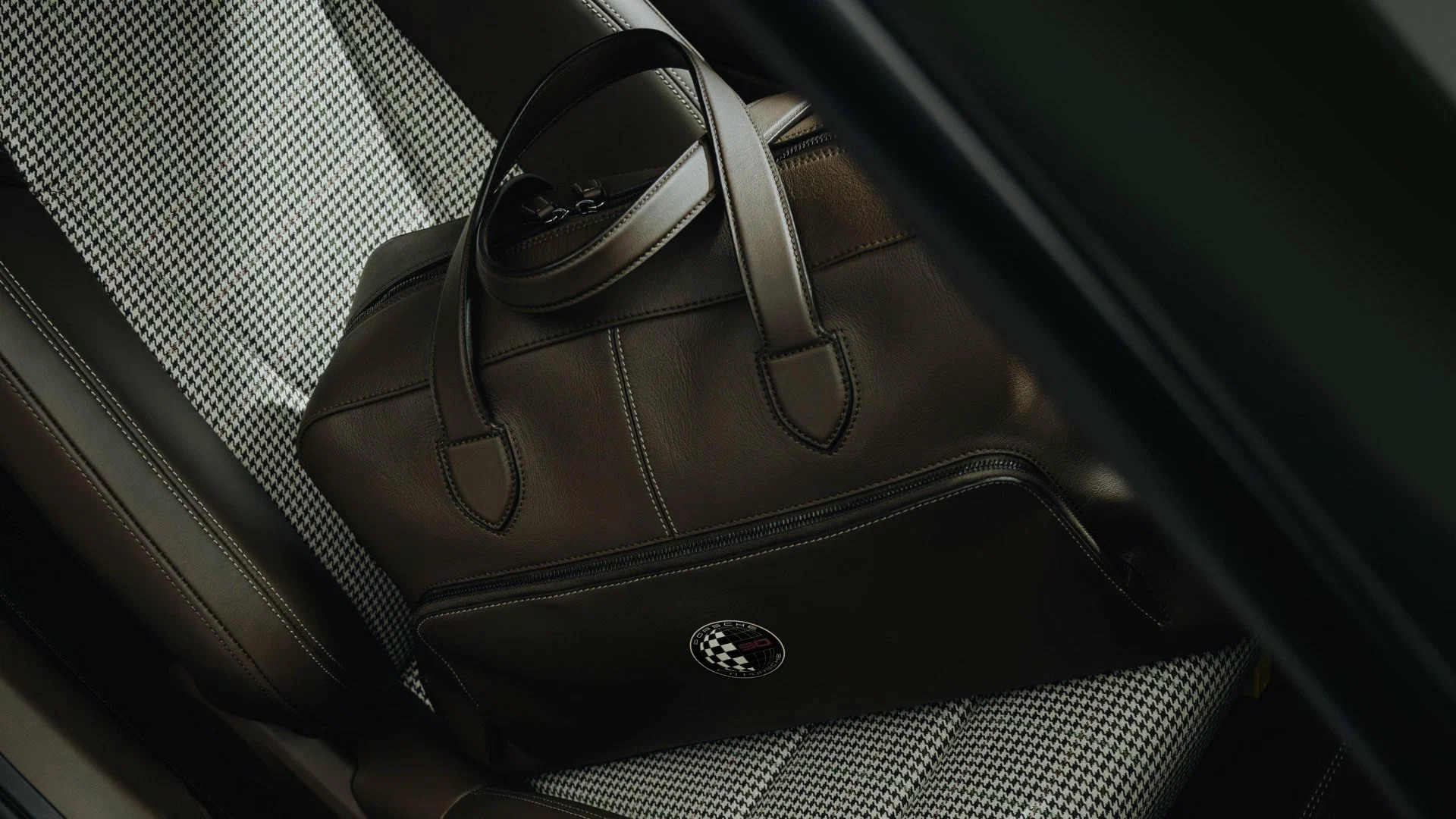 В салоне кожаная обивка коричневого цвета сочетается с твидовыми вставками, украшенными паттерном «гусиная лапка» – именно такой узор дизайнер предпочитал видеть в своём гардеробе. На деревянном рычаге КПП и специальной металлической плашке выгравирована подпись мастера.