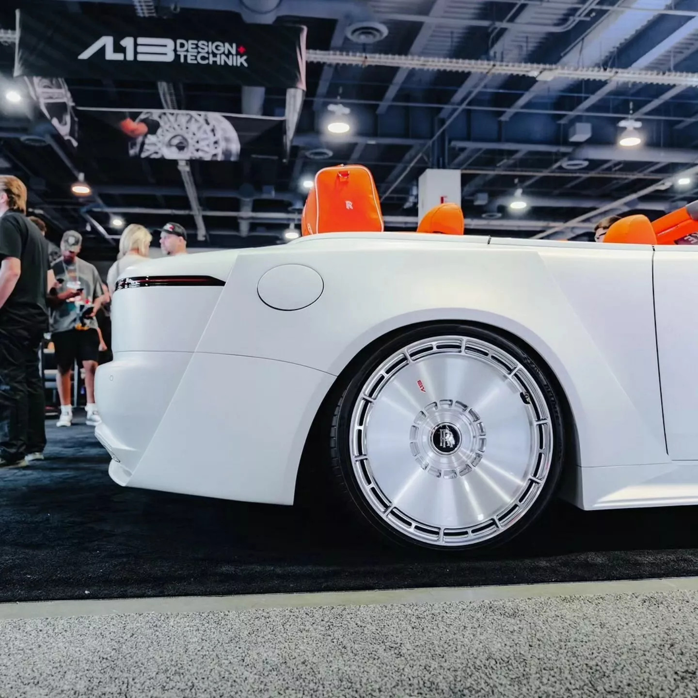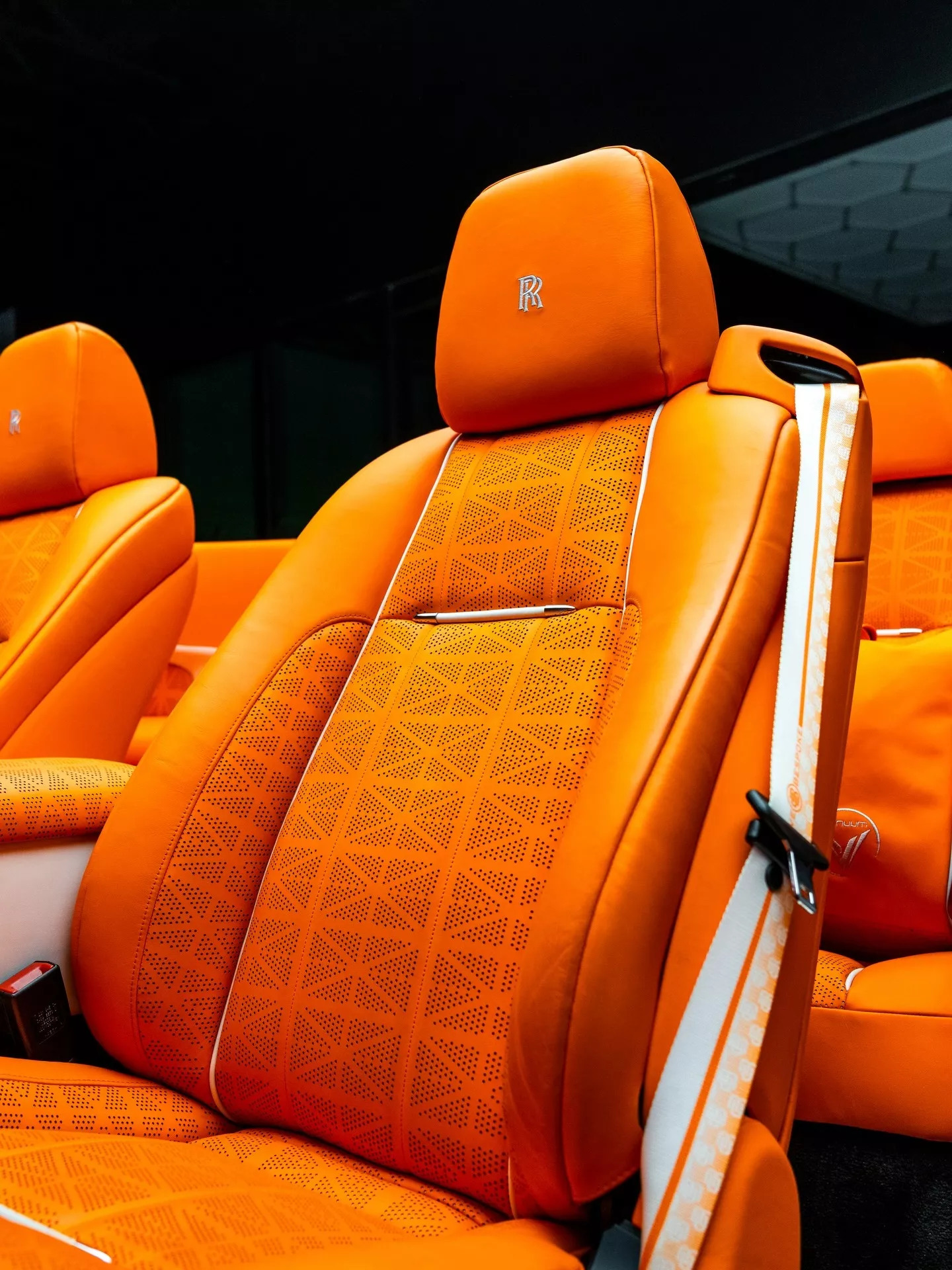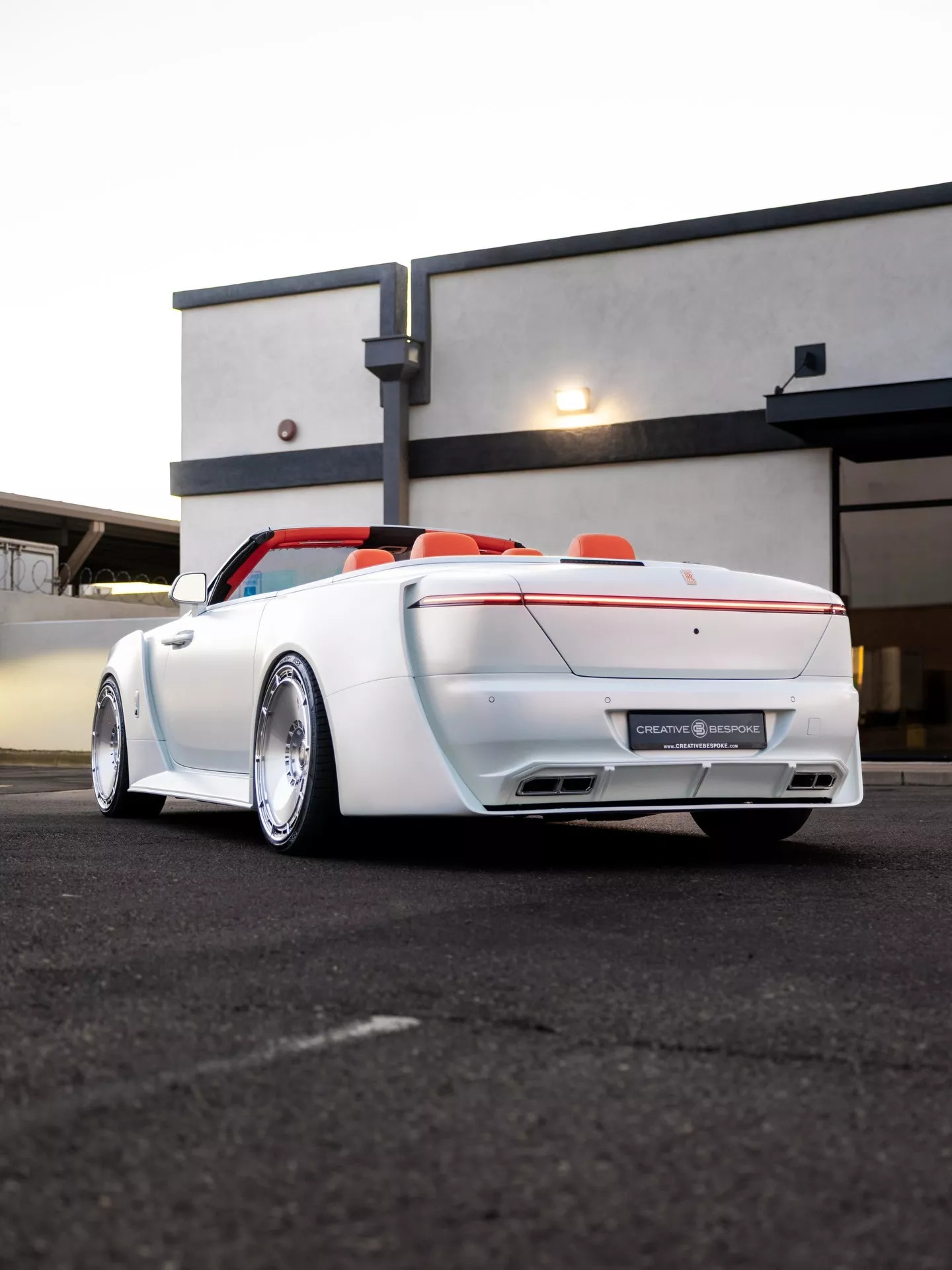 Итак, авторство смелого боди-кита принадлежит известной дизайн-студии Venuum из Дубая. Новые детали целиком преображают элегантный британский кабриолет, превращая его в центр притяжения внимания. Спереди автомобиль щеголяет решётками с замысловатым треугольным паттерном, дополнительными ходовыми огнями и белой статуэткой «Дух экстаза» на капоте, которая соседствует с оранжевой эмблемой Rolls-Royce. По бокам располагаются юбки и декоративные накладки на панели, а сзади – новый бампер с агрессивным диффузором и спортивная выхлопная система.