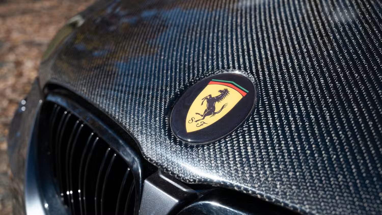Снаружи о тюнинге красноречиво свидетельствует спортивная выхлопная система без катализаторов, доработанные тормоза спереди и углепластиковый обвес с расширенными арками, боковинами, сплиттером и диффузором. На капоте из того же легковесного материала красуется логотип Ferrari.