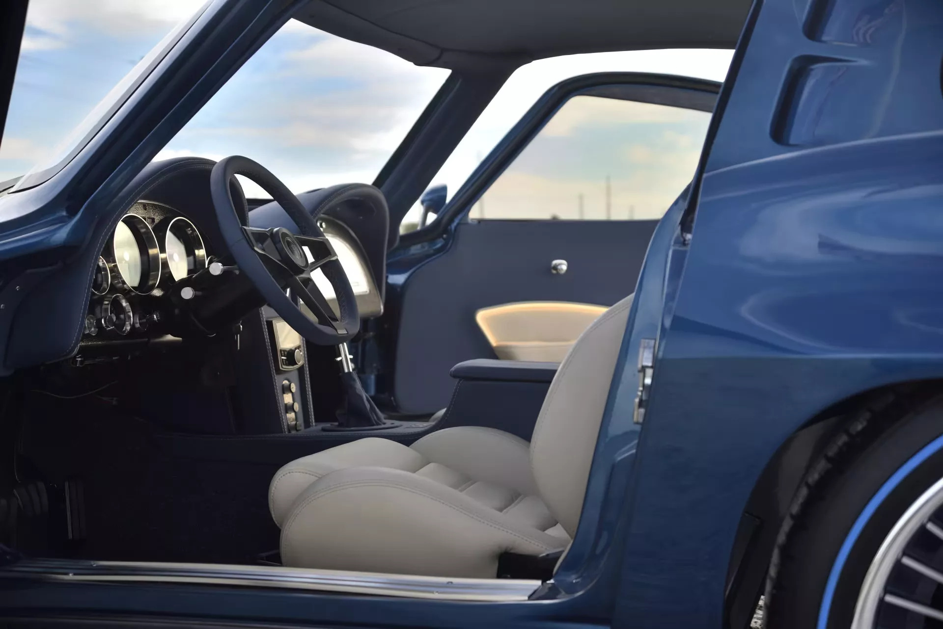 Внешне автомобиль явно схож с оригиналом, но дополнен более современными чертами дизайна и стилистическими наработками. У него разделённое на две панели окно сзади, «калифорнийский синий» окрас кузова и тёмная хромированная отделка. От декоративных воздуховодов и выштамповок было решено избавиться в угоду лаконичности, а пропорции кузова мастер выдержал максимально близкими к оригиналу. Последнее особенно примечательно, если учесть, что в базу проекта легло кастомное шасси Art Morrison – то есть, это построенный с нуля новодел, а не реставрация.