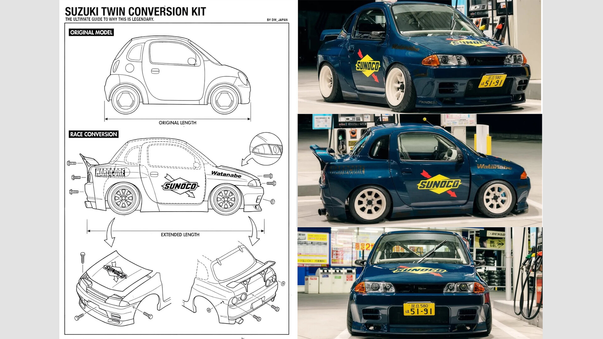 Пародийный боди-кит называется Pocket Bunny («Карманный кролик») и адресован местной микролитражке Suzuki Twin. Будучи смонтированным, он превращает 27-сильный городской автомобиль в некое подобие культового Nissan GT-R R32. Для этого требуется замена всех кузовных панелей, кроме дверей и крыши. В качестве отдельного плюса упоминается скромного размера багажник, который у оригинала не предусмотрен конструкцией вовсе.