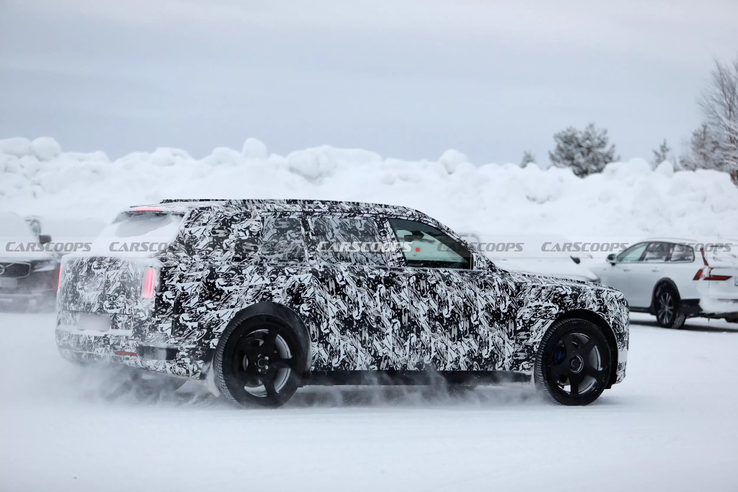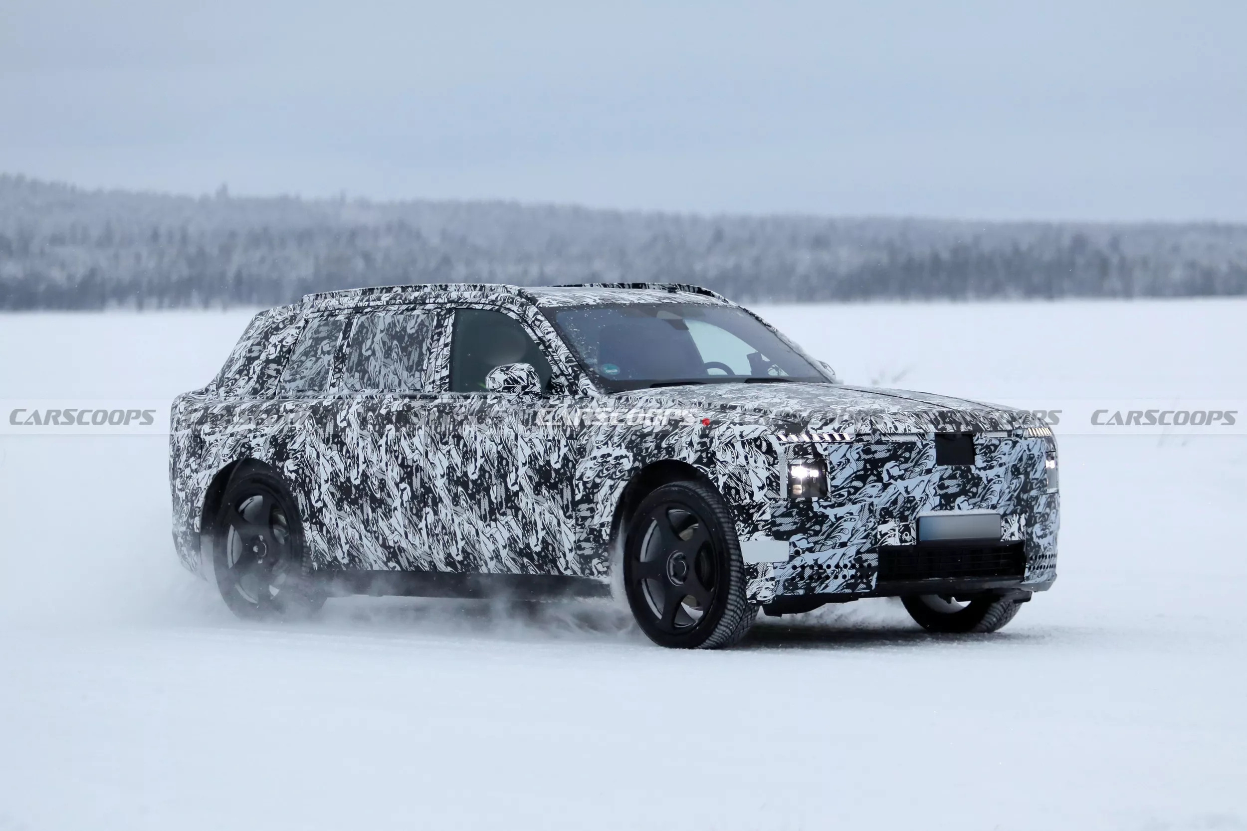 В экстерьере нового «Каллинана» бросаются в глаза видоизменённые фары и пластика передка, иная линия остекления и корма со спортивным изгибом. Хотя камуфляжная плёнка не даёт судить о деталях, уже очевидно, что внешность кроссовера приведут в соответствие с дизайном батарейного первенца марки – купе Rolls-Royce Spectre.