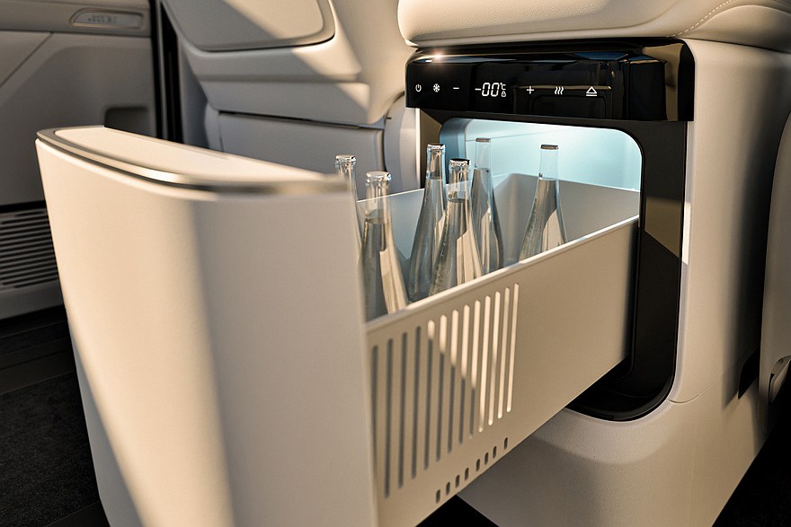 В салоне заявлены передние кресла с вентиляцией и подогревом, климатическая установка на три зоны и система полуавтономного вождения. За доплату появляются панорамный верх, воздушная подвеска и потолочный дисплей для пассажиров сзади. В топовой комплектации также упомянуты отделка кожей наппа и обогрев с вентиляцией всех кресел, плюс массаж для первых двух рядов.