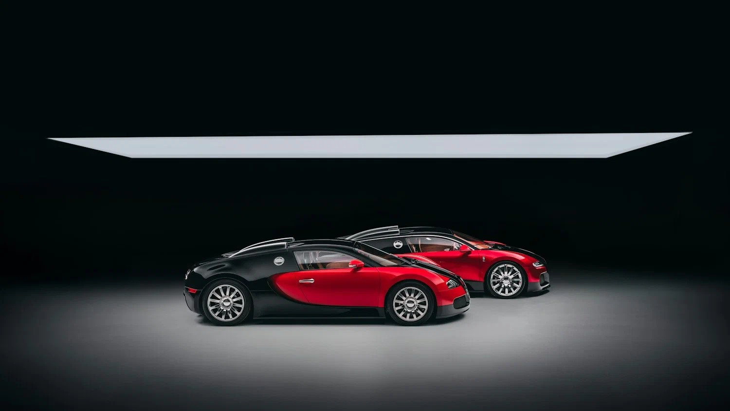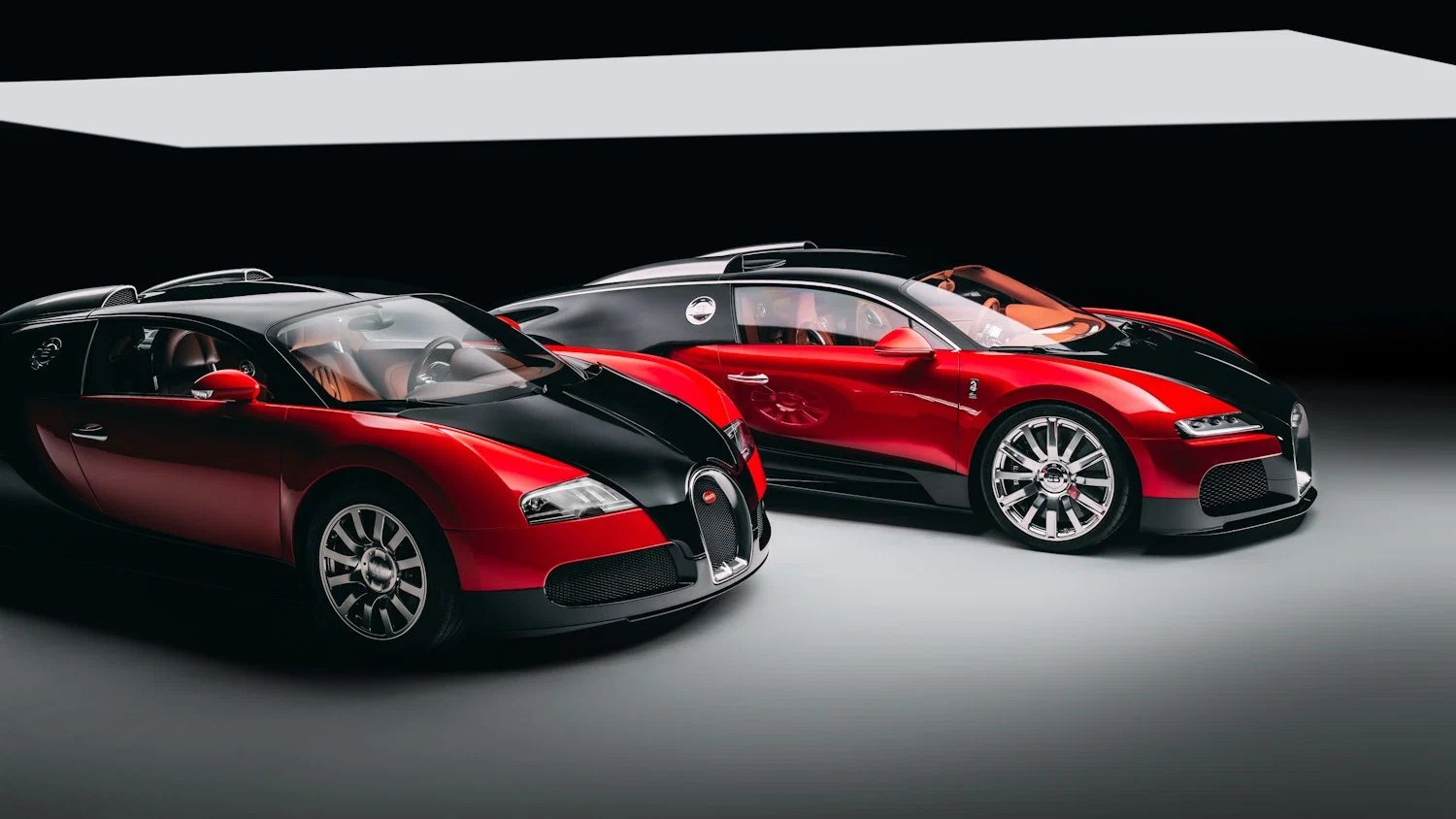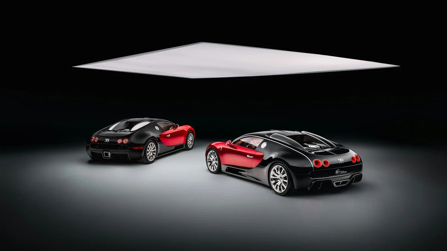 Экстерьер купе выкрасили в то же сочетание красного и чёрного цветов, что и первый произведённый «Вейрон». Кузовные панели, оптику и обвес постарались подогнать под оригинал, но в силуэте по-прежнему безошибочно угадывается более современный «Широн». Спутать новодел с источником вдохновения не удастся.