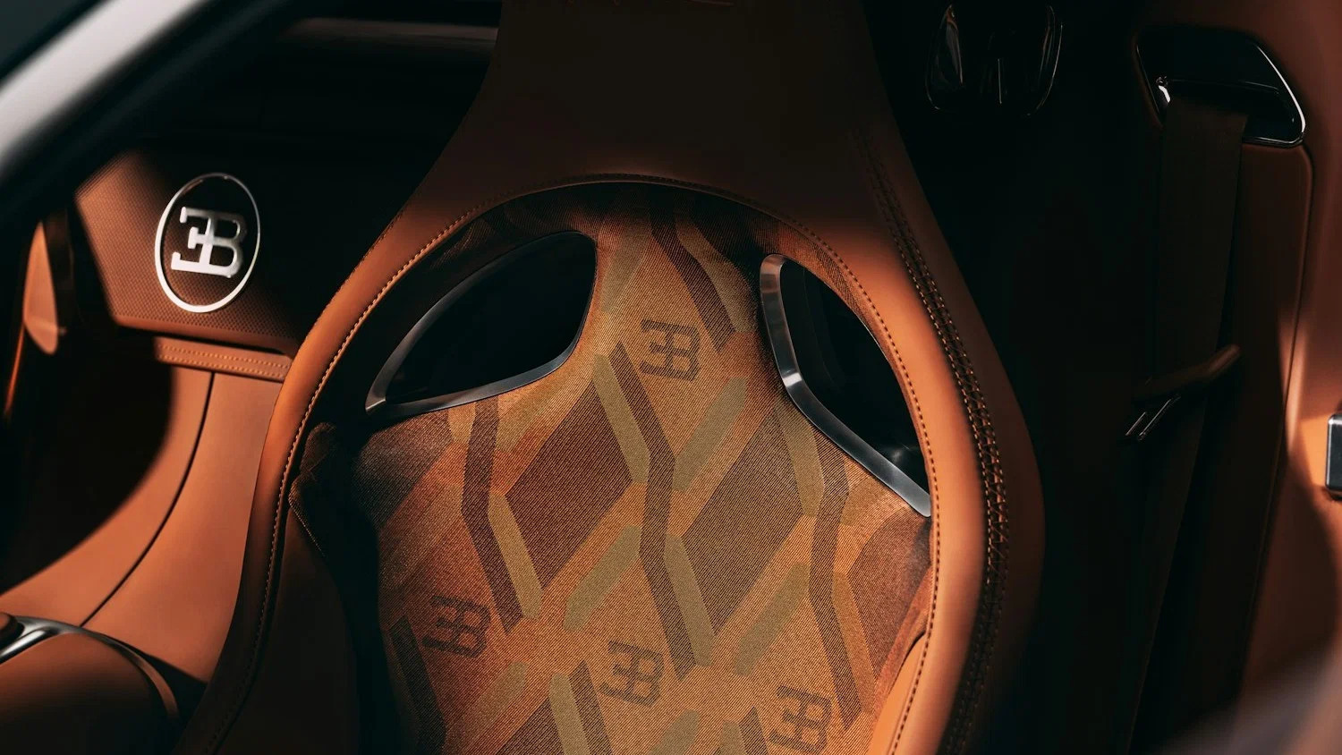 Салон оформлен в ретро-эстетике, но осовременен при помощи цифровой приборной доски и руля с множеством переключателей. На передней панели красуются физические ручки управления климатом, а над ними в специальной нише смонтирован эксклюзивный хронометр Audemars Piguet. На подголовниках кресел вышит автограф Фердинанда Пиеха, отвечавшего за дизайн «Вейрона».