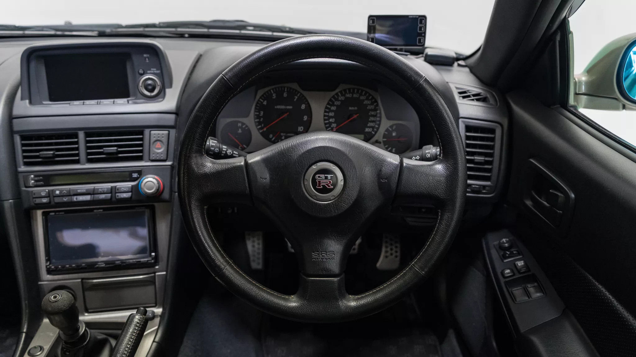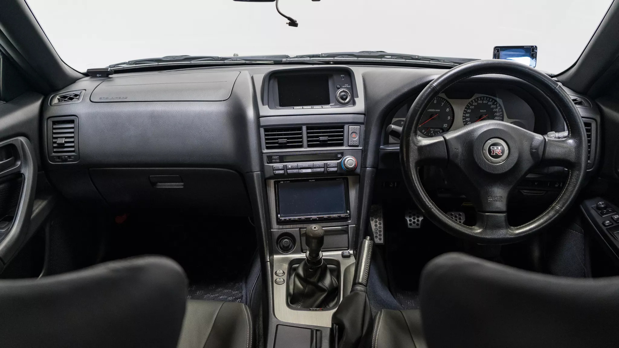 На счётчике пробега авто значится порядка 60 000 км, но стаж двигателя фактически ближе к 15 000 км. Дело в том, что владелец спорткара заменил стандартную рядную «шестёрку» RB26DETT на более высокотехнологичный агрегат с индексом R2. Точная отдача не указана, но она выше 500 лошадиных сил.
