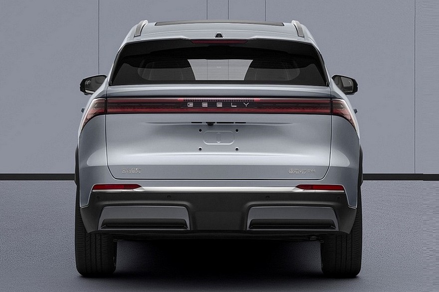 Снаружи автомобиль отличается обтекаемым передком со встроенной радиаторной решёткой, заходящими на бока узкими фарами со светодиодной полоской между ними и фонарями в аналогичном стиле. Габариты – 4770 * 1905 * 1985 мм при расстоянии между осями 2785 мм. Что интересно, и размерами, и очертаниями кузова новинка смахивает на недавно обновившийся неэлектрифицированный кроссовер Geely Boyue L. Вероятно, модели частично унифицированы по отделке и технике.