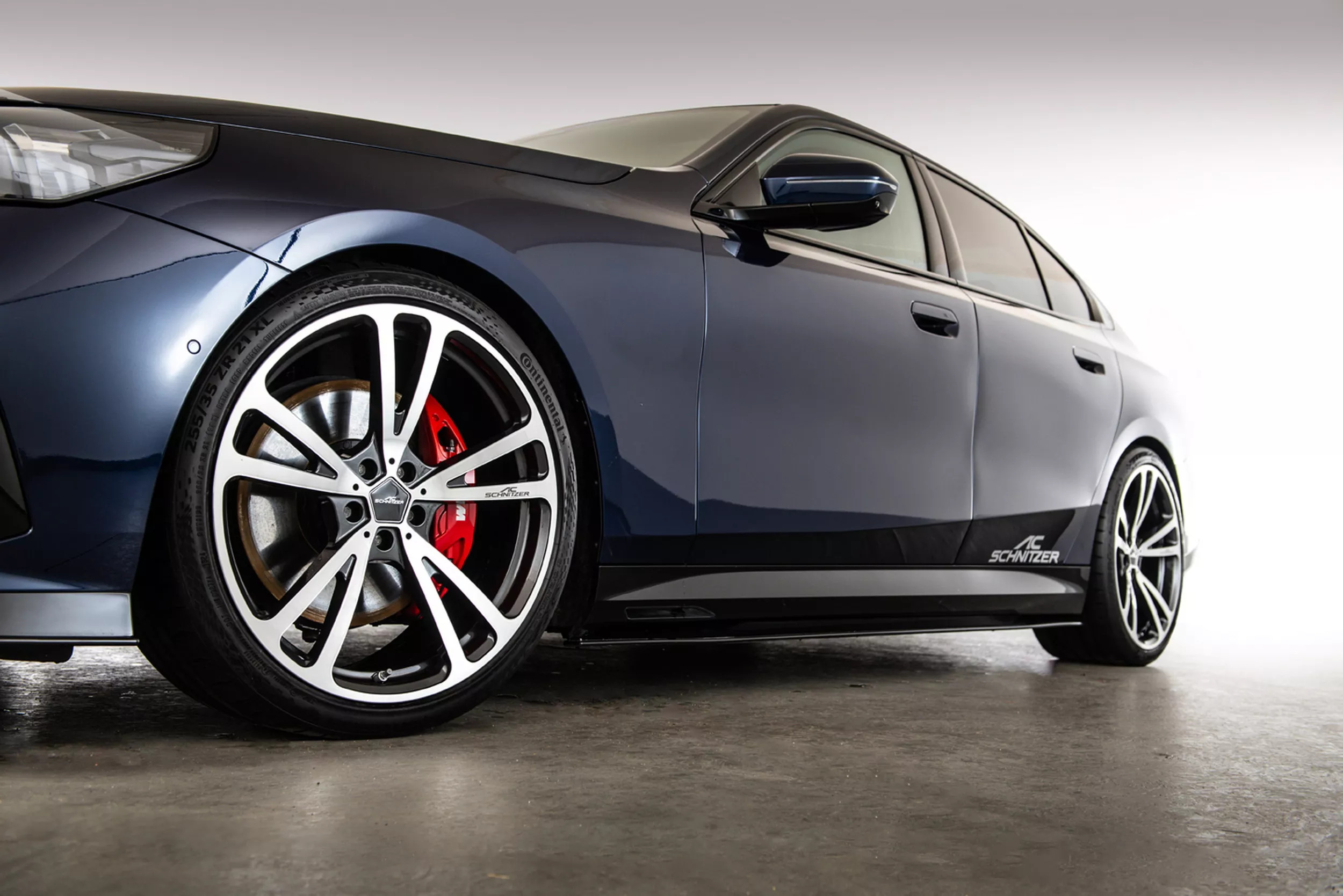 Если одних только кузовных украшательств окажется мало, AC Schnitzer предлагает заменить штатные диски на легкосплавную модель диаметром от 19 до 21 дюйма. На изображённом здесь автомобиле смонтированы колёса AC3 FlowForming 21” с пятью парами спиц и красными тормозными суппортами для контраста. Подвеска занижена на 20-25 мм, а колея расширена на 20 мм, чтобы повысить устойчивость в поворотах.