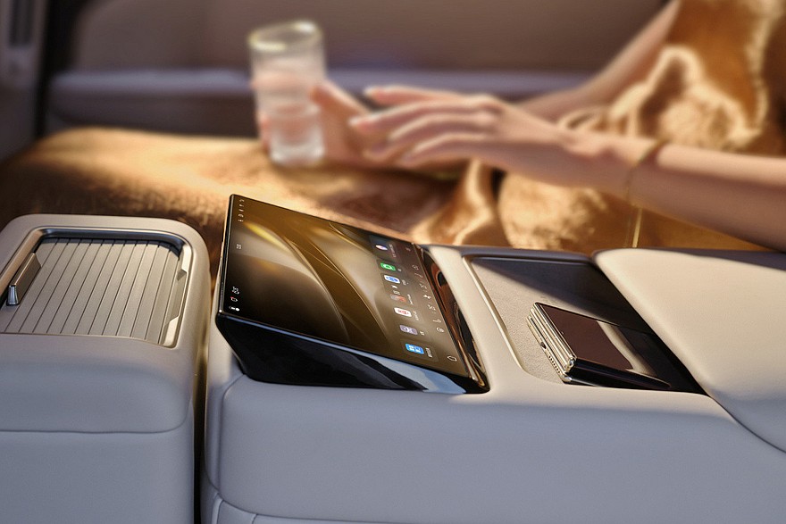 В базовом оснащении упомянуты активная адаптивная подвеска, климатическая установка на две зоны и акустическая система с эффектом 3D-звука. За доплату доступны система полуавтономного вождения, 12 подушек безопасности и проектор с поддержкой дополненной реальности на лобовое стекло. Отдельного упоминания заслуживает задний диван-трансформер: одним нажатием кнопки он убирает свою центральную секцию, по сути, превращаясь в два раздельных кресла с практичной консолью посередине.