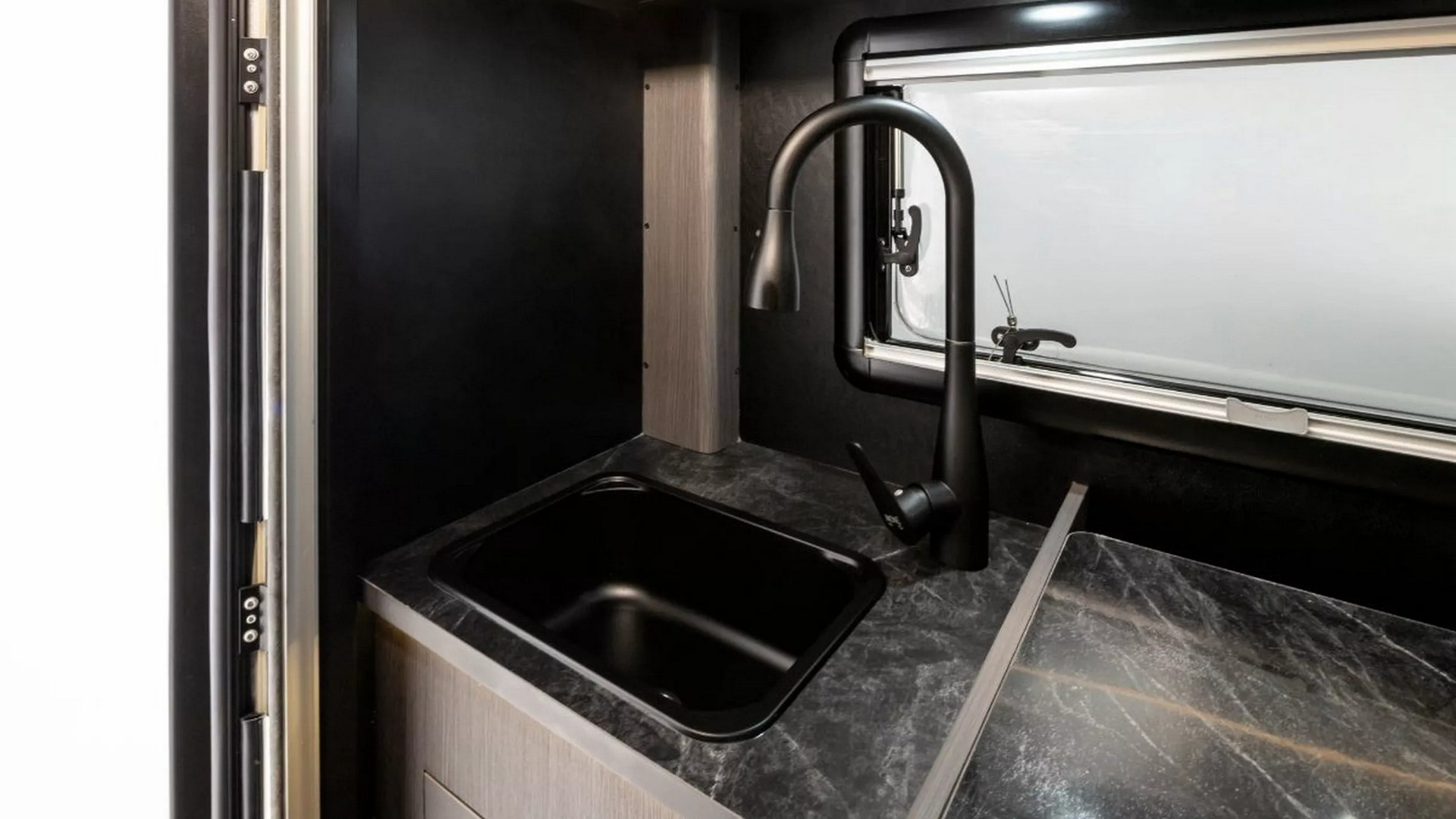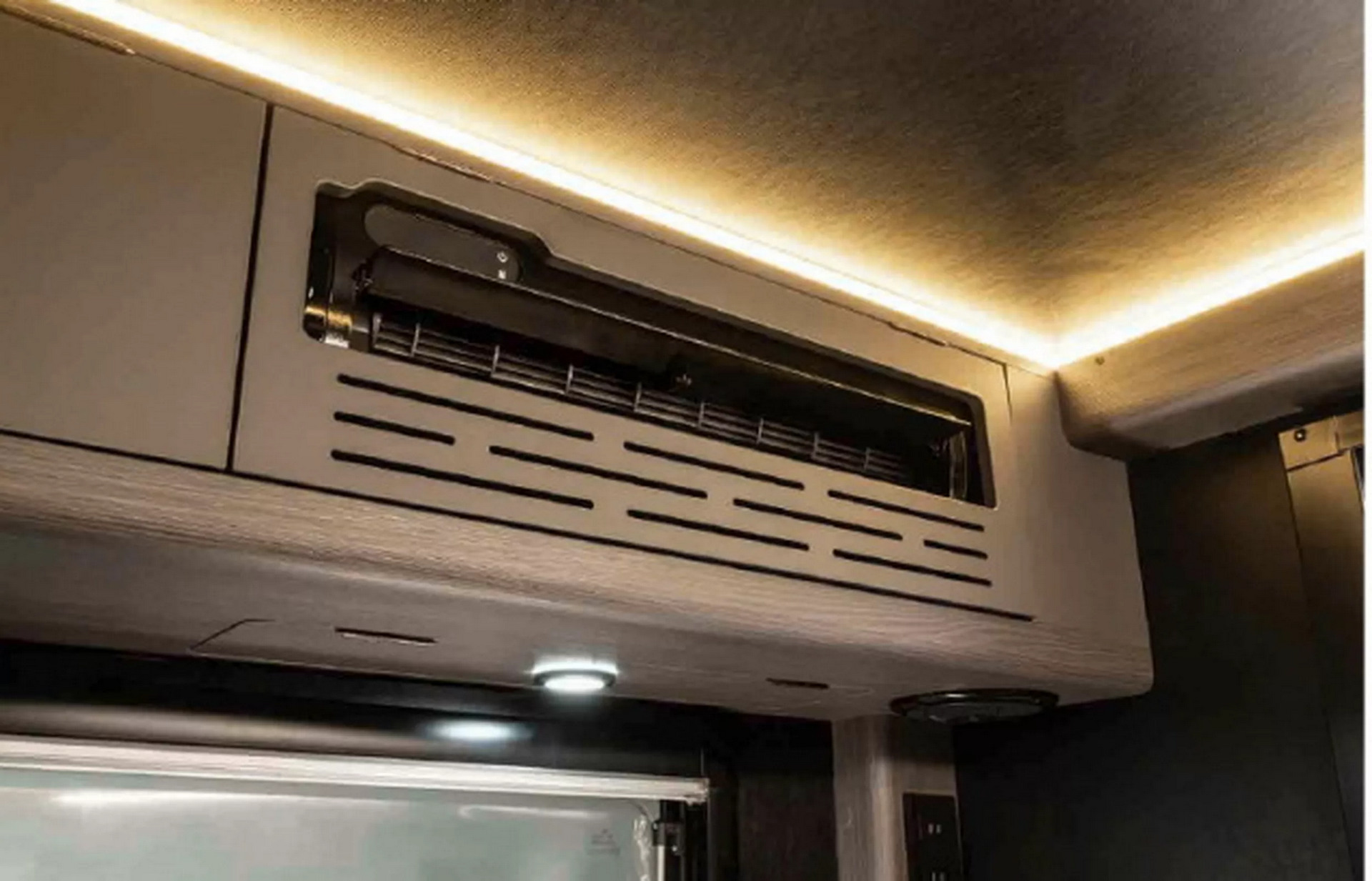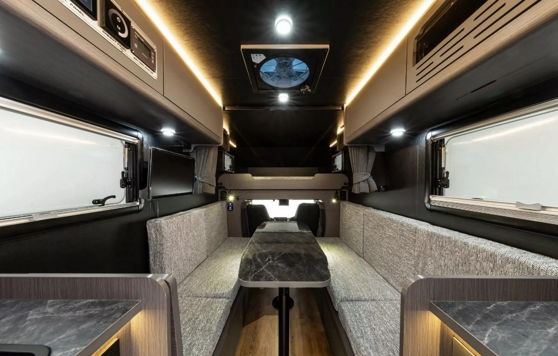 На борту также имеются микроволновая печь, раковина, 35-литровый холодильник и даже кондиционер. Под нижней кроватью спрятаны ящики для хранения вещей, а всё внутреннее пространство хорошо освещается и снабжено множеством USB-портов для зарядки гаджетов. По умолчанию автомобиль комплектуется аккумуляторным блоком на 100 ампер-часов, а за доплату доступен второй такой же блок и солнечные батареи на крышу совокупной мощностью генерации 100 Вт.