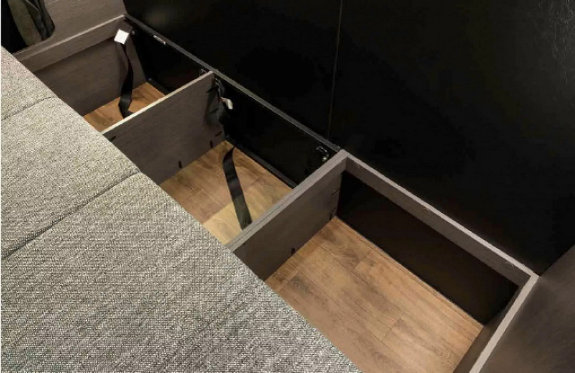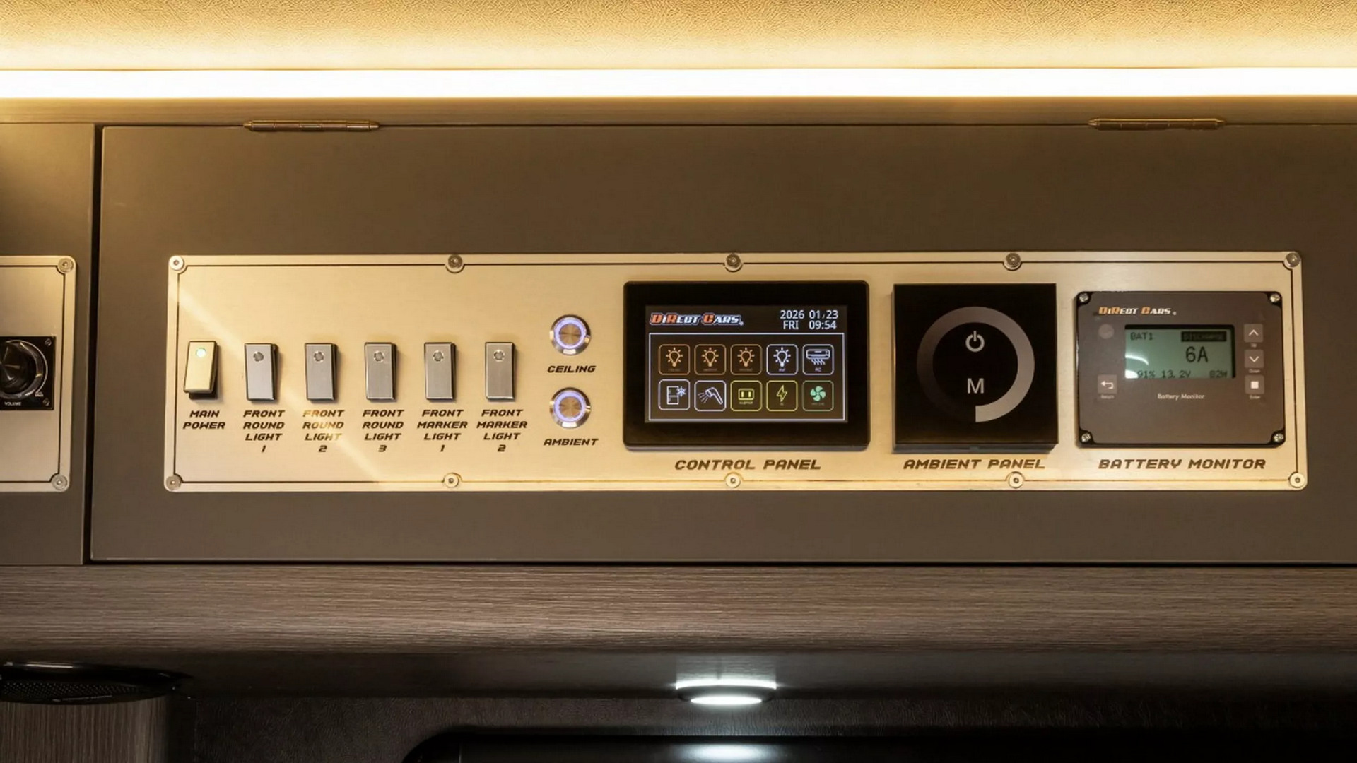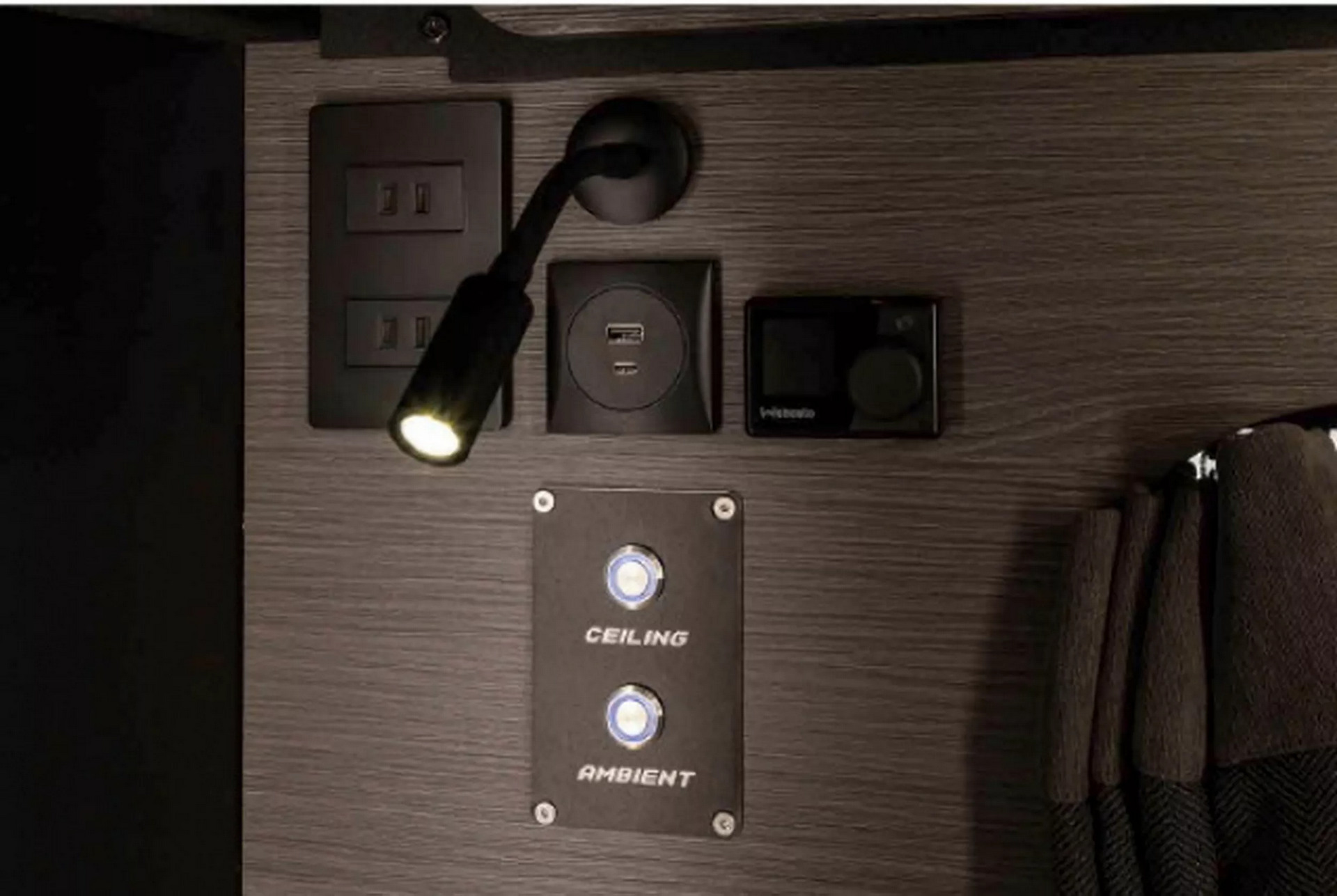 На борту также имеются микроволновая печь, раковина, 35-литровый холодильник и даже кондиционер. Под нижней кроватью спрятаны ящики для хранения вещей, а всё внутреннее пространство хорошо освещается и снабжено множеством USB-портов для зарядки гаджетов. По умолчанию автомобиль комплектуется аккумуляторным блоком на 100 ампер-часов, а за доплату доступен второй такой же блок и солнечные батареи на крышу совокупной мощностью генерации 100 Вт.