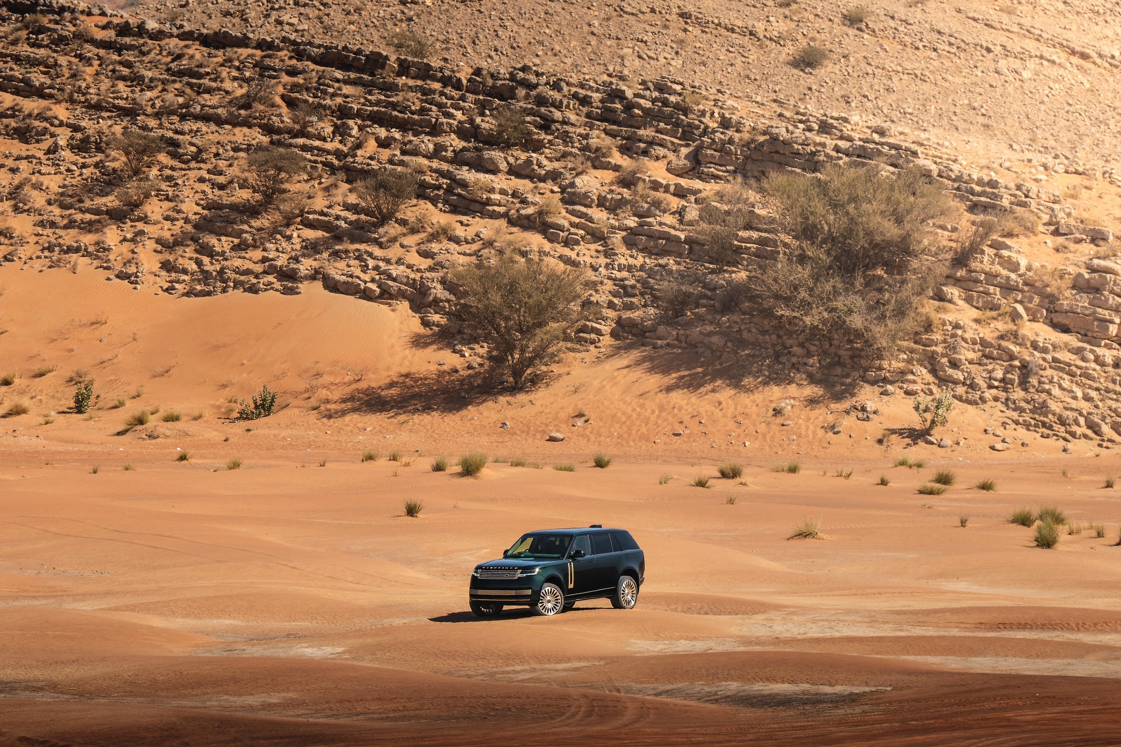 Работая с современным Range Rover, дизайнеры украсили его экстерьером знаменитого оттенка «британский гоночный зелёный», золотистыми акцентами и 23-дюймовыми коваными дисками. Логотип спереди заменили на собственный, а на решётку радиатора смонтировали эмблему H&H.