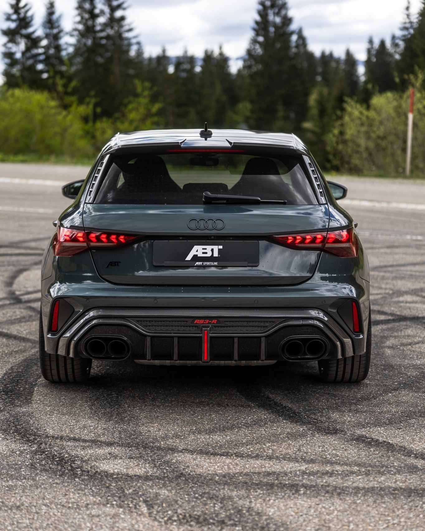 Салон на фото не показали, неизвестны и доработки подвески. Обычно ателье монтирует собственные стабилизаторы поперечной устойчивости, спортивные пружины и выхлопные системы. В арках появляются 20-дюймовые диски, а в салоне – фирменные коврики, декор для кнопок и другие мелочи. Наверняка всё это доступно и для изображённого здесь RS3-R Sportback, который уже доступен для заказа.