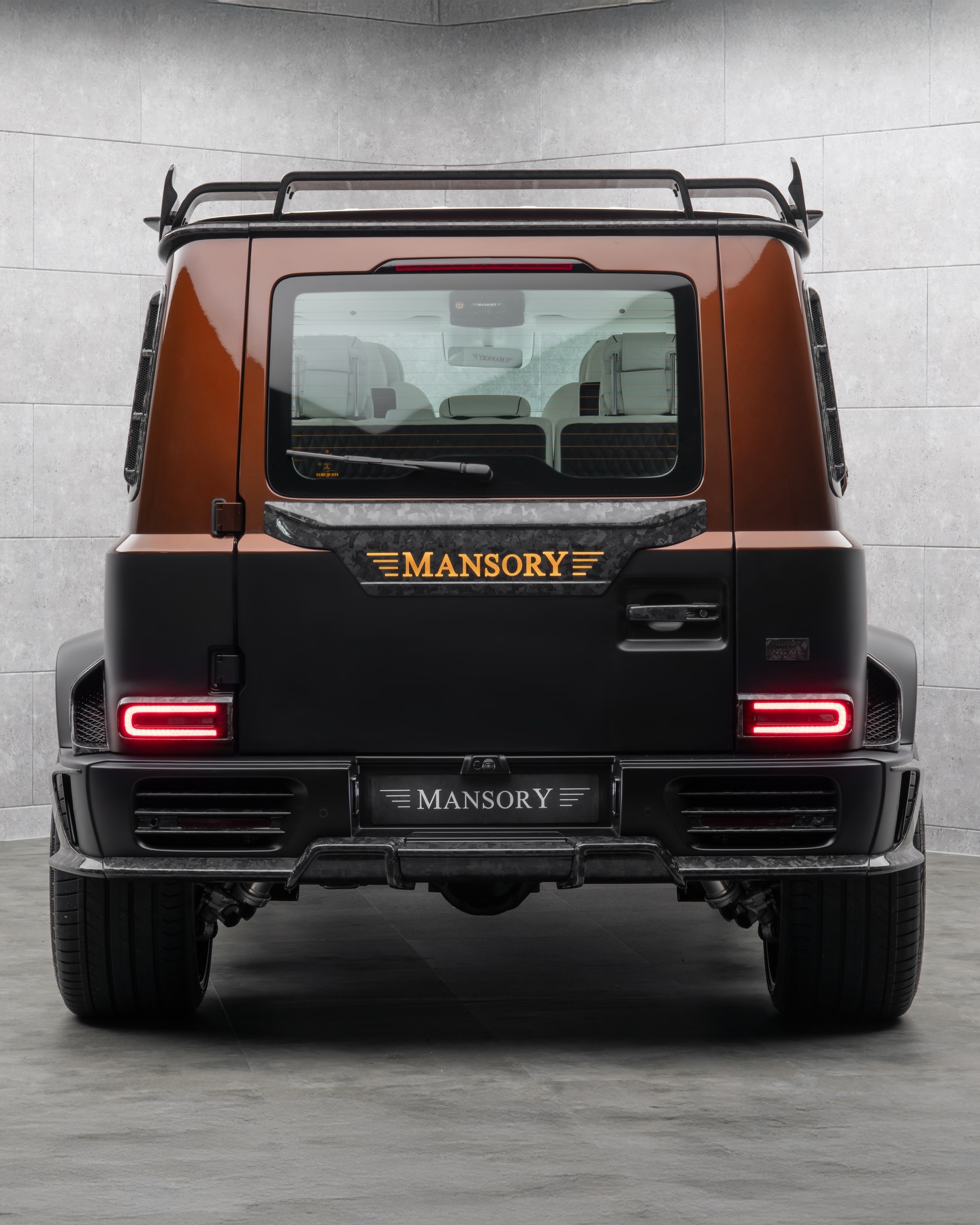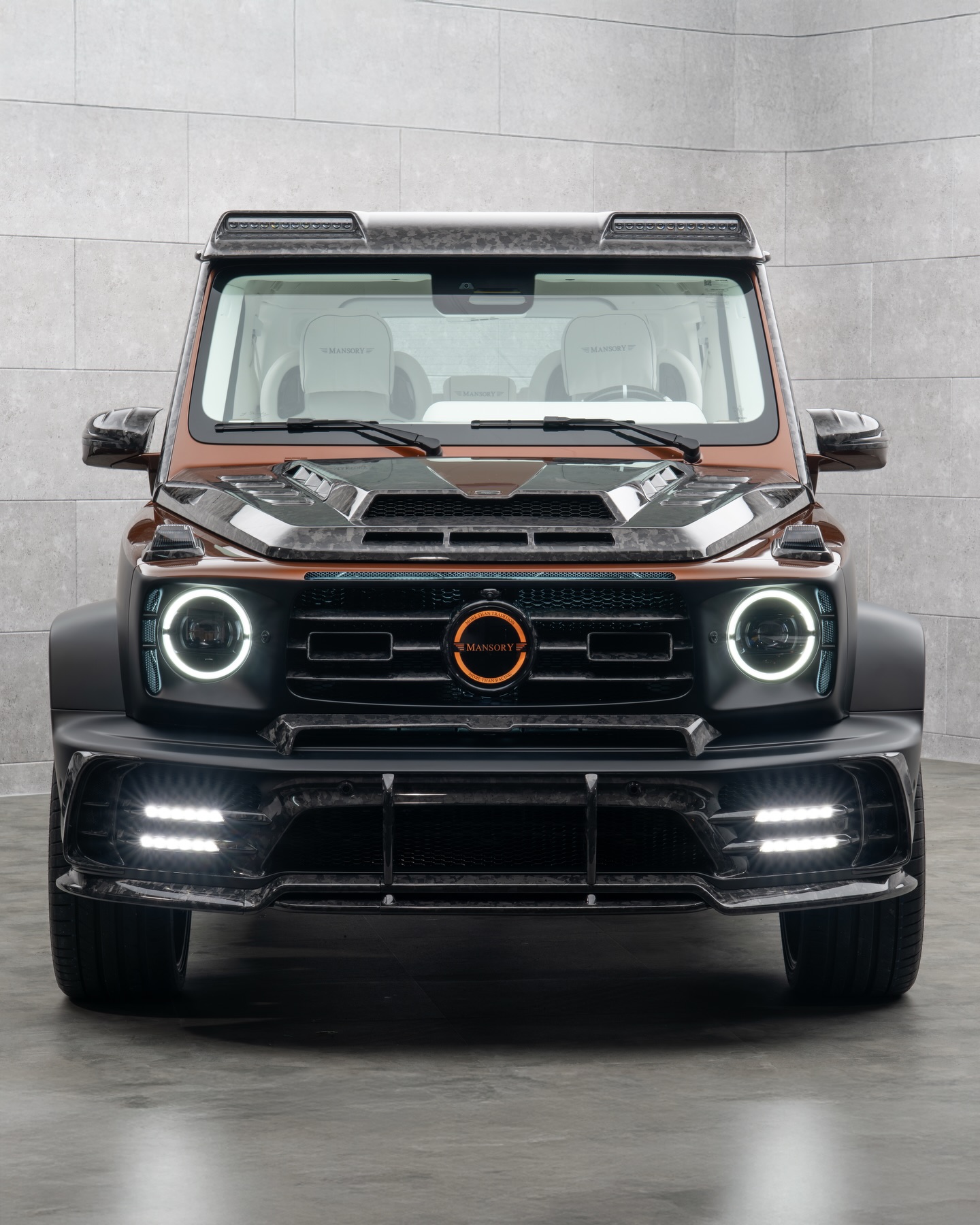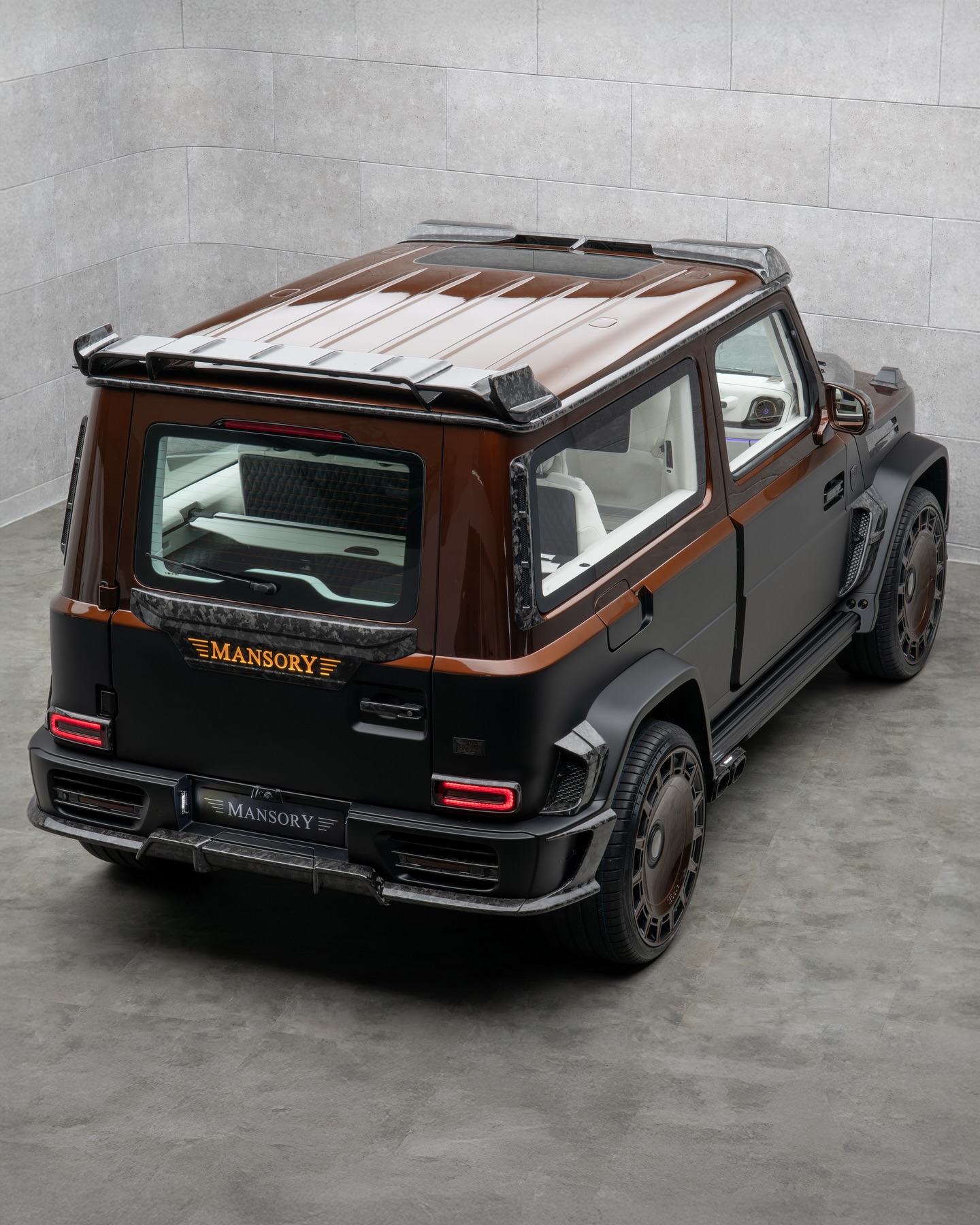 Взамен «проходимец» обзавёлся уникальной внешностью на базе обвеса из углепластика с «кованым» рисунком. В составе – передний бампер с воздухозаборниками, рассекатель воздуха, радиаторная решётка, рельефный капот, арки, крышной спойлер и диффузор. «Катки» раллийного типа удачно гармонируют с матовой чёрно-коричневой гаммой экстерьера, хотя их собственная отделка глянцевая.