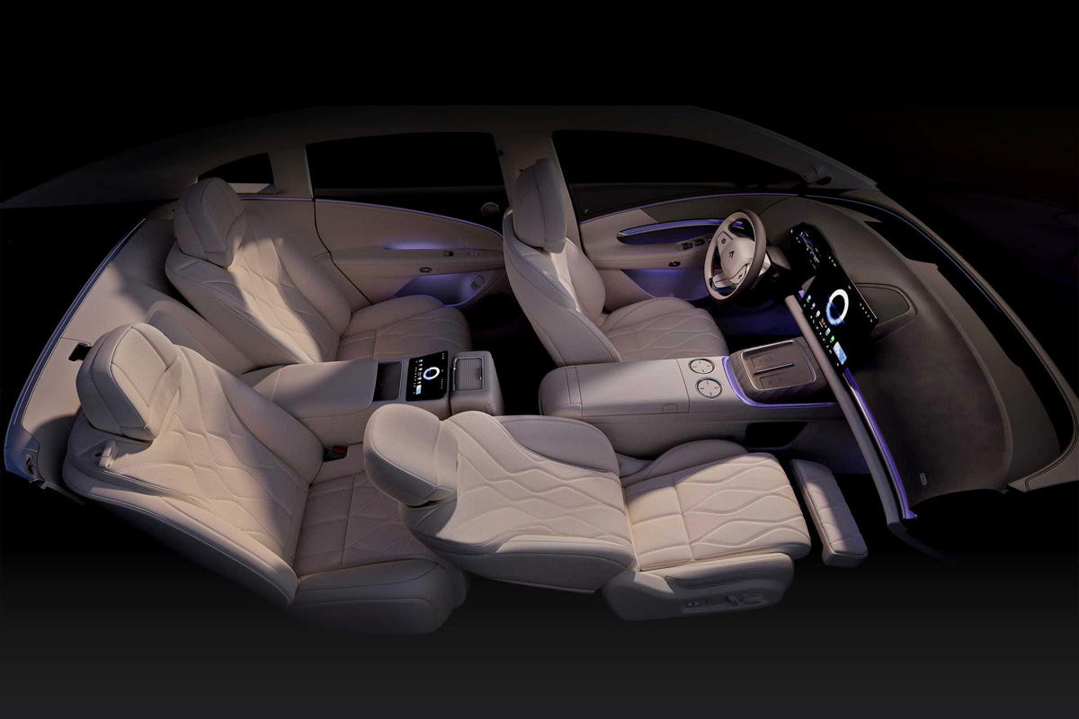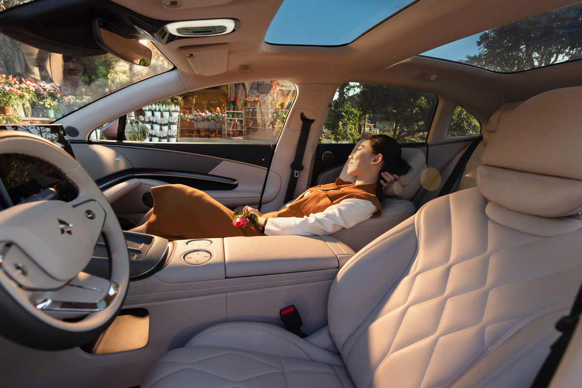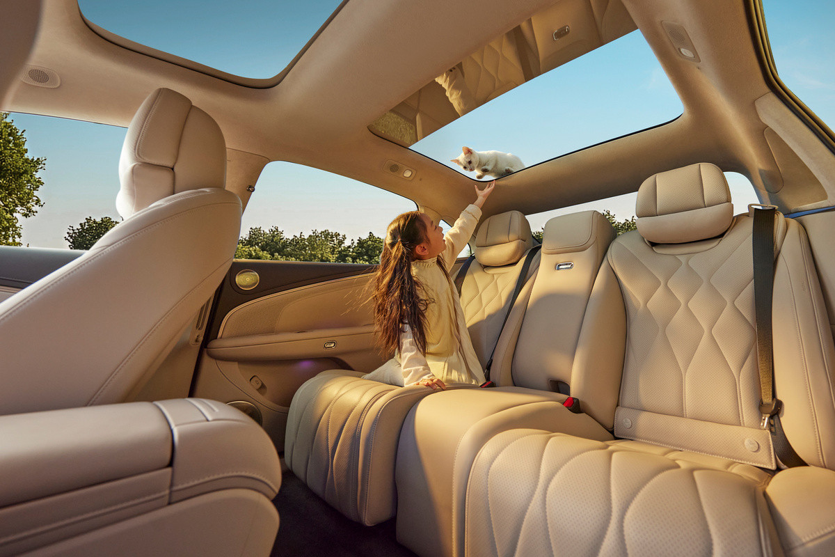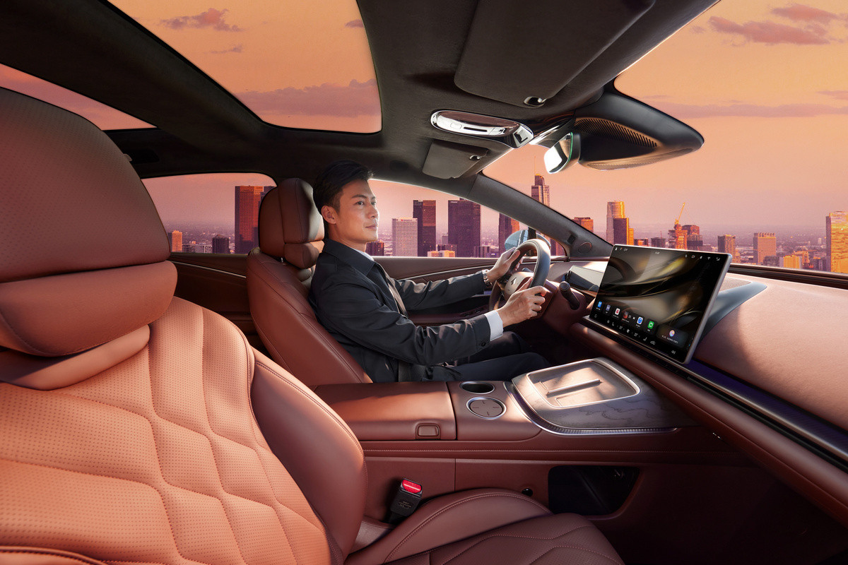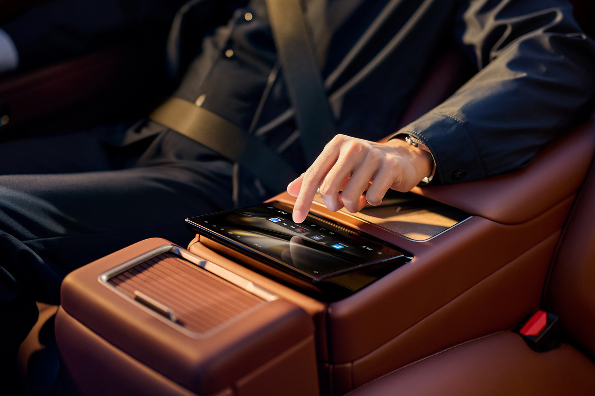За доплату полагаются, помимо прочего, проекционный дисплей, защита дверных ручек от обледенения и система полуавтономного вождения Huawei ADS 4 на базе лидара. В «топе» появляются воздушная подвеска, кожаная отделка, термобокс, а также массаж и обогрев всех рядов. По нажатию кнопки задний диван можно переконфигурировать в два раздельных кресла с массивной консолью между ними.