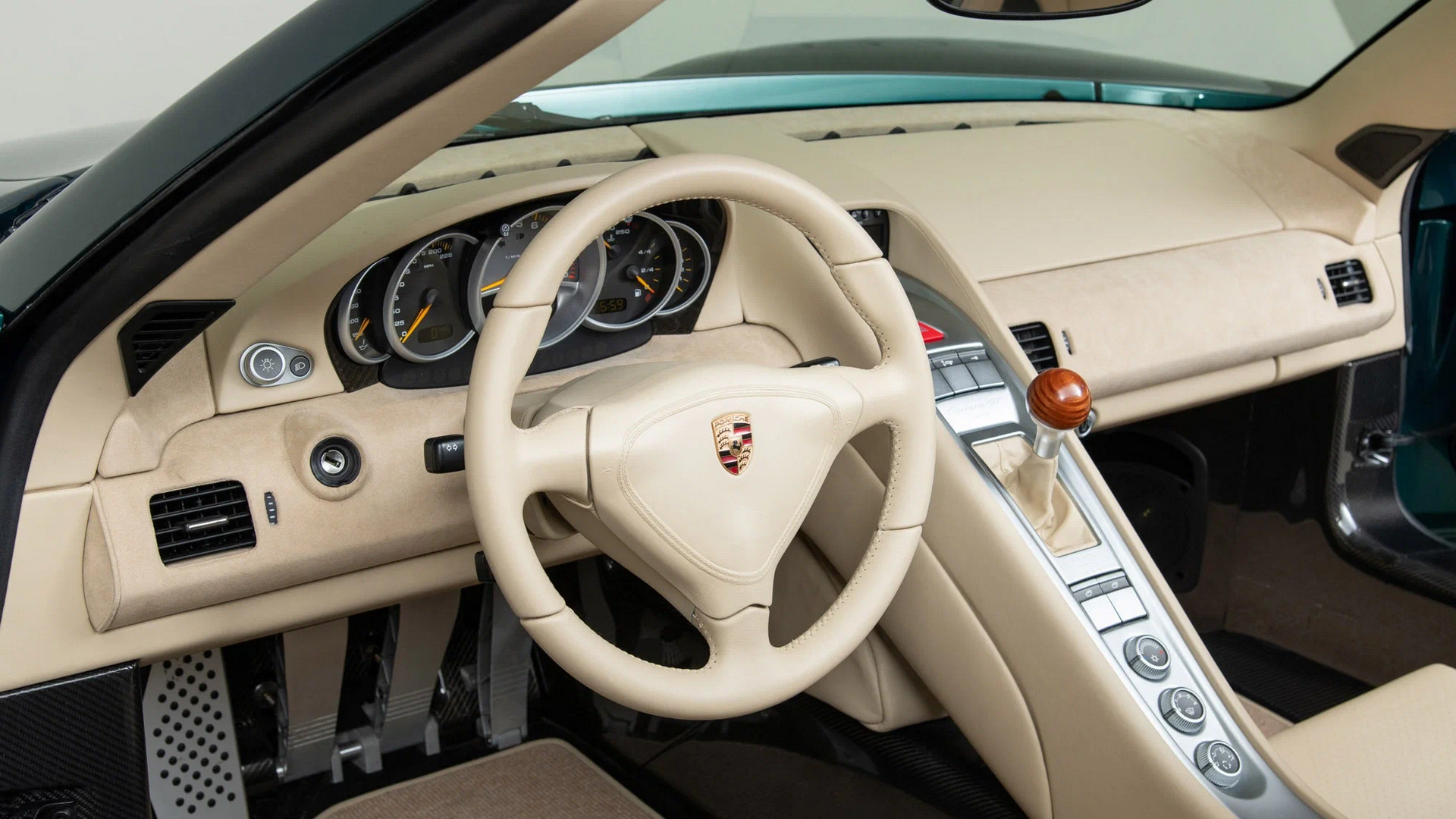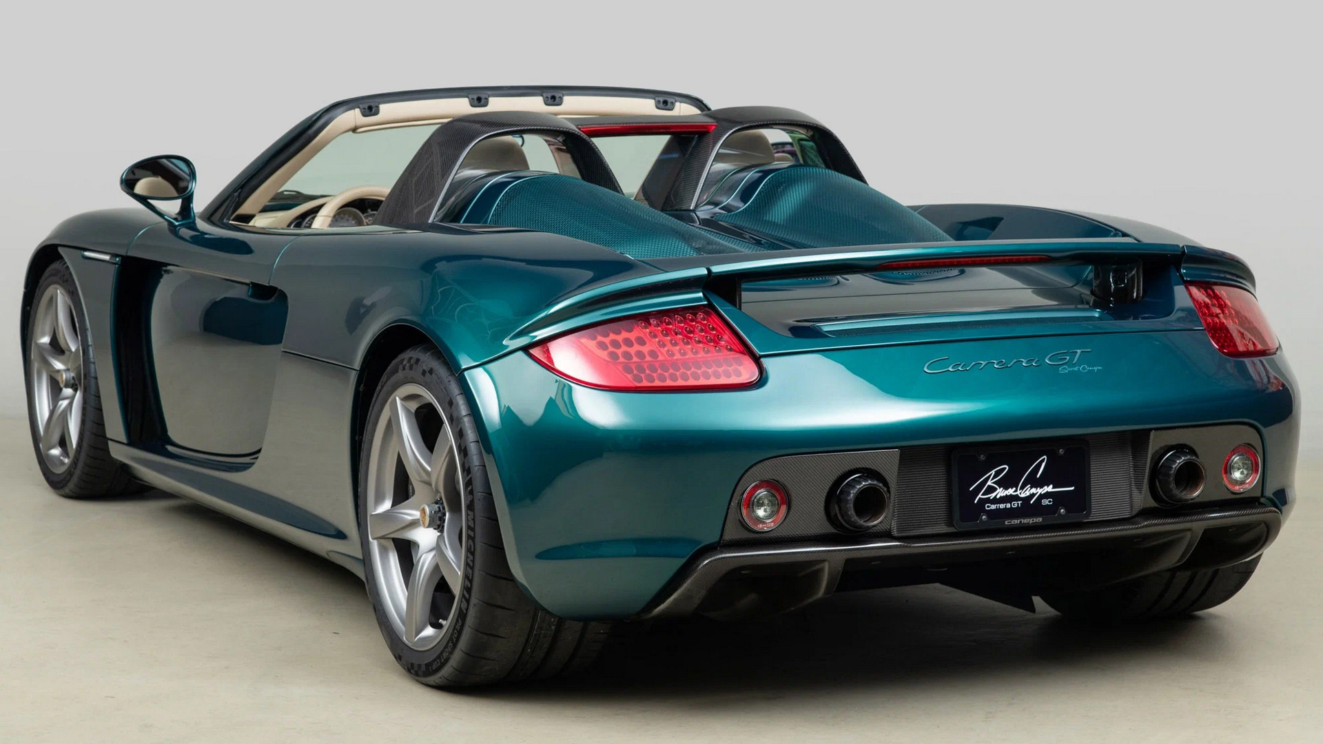 Снаружи особый Carrera GT SC (Sport Canepa) можно узнать по особому окрасу «зелёный жидкий металл», магниевым «каткам» с пятью спицами и изящным гофрированным патрубкам выхлопной системы. В интерьере целиком обновилась отделка: выбор мастера пал на натуральную кожу сливочного оттенка в связке с синтетической замшей и алюминиевыми акцентами. За креслами расположилась дуга безопасности из углепластика.