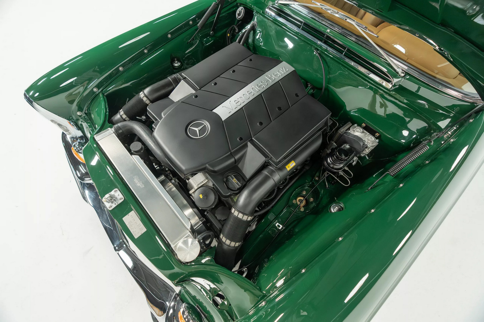 Под капотом разместилась атмосферная «восьмёрка» на 5,4 литра рабочего объёма, снятая с более современного Mercedes-AMG C-класса. Ей полностью заменили электрику, радиатор и выхлопной тракт, а заодно увеличили бензобак. Отдачу не раскрыли, но вряд ли она ниже штатных 372 л. с. и 510 Нм крутящего момента.
