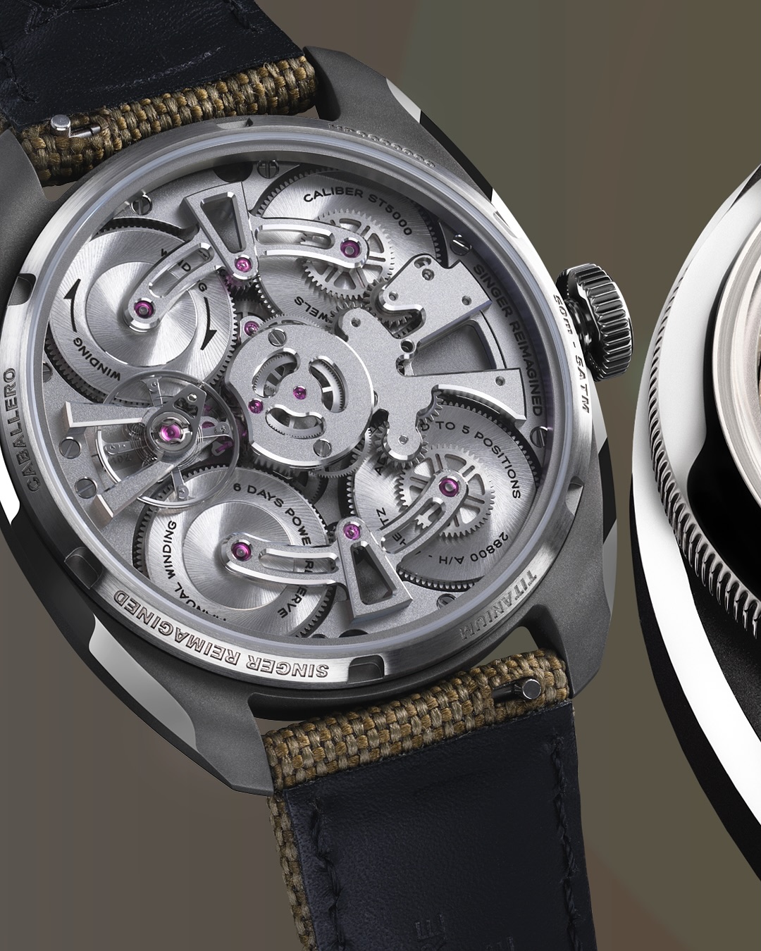 Некоторое время назад Роб Дикинсон, основатель и владелец реставрационной мастерской Singer Vehicle Design для автомобилей Porsche, зарегистрировал в Швейцарии компанию Singer Reimagined для выпуска хронометров. На днях она выпустила наручные часы Caballero Titanium стоимостью 18,5 тысяч швейцарских франков, или примерно $23 300.