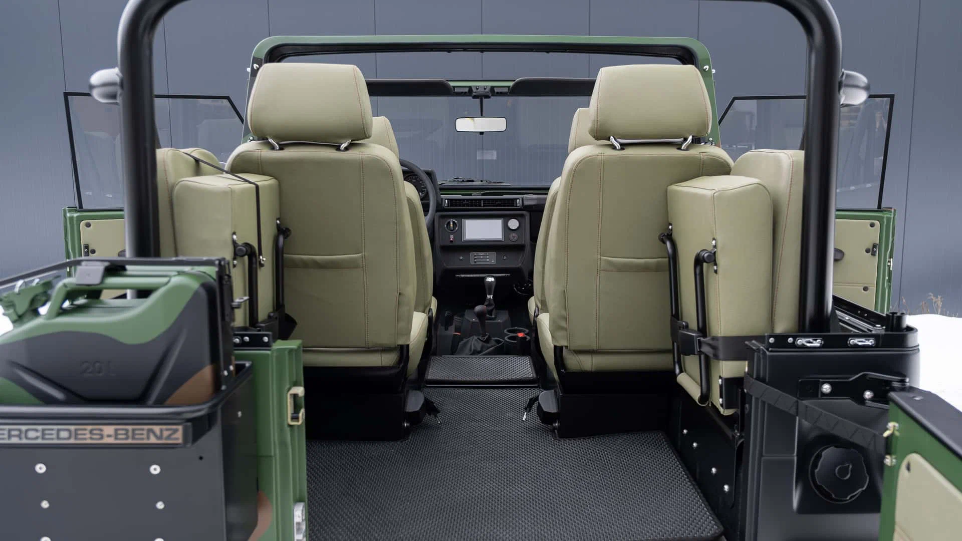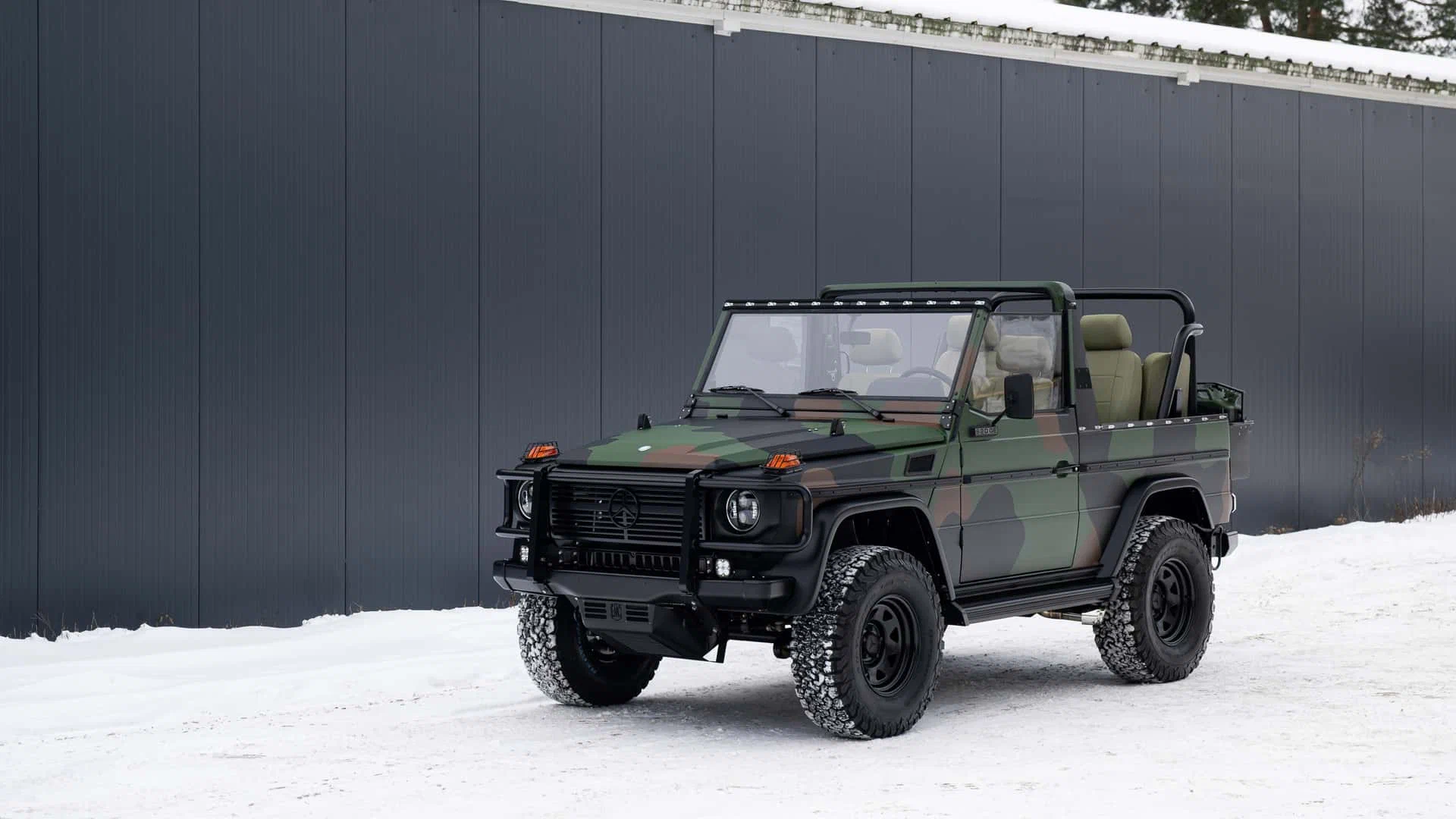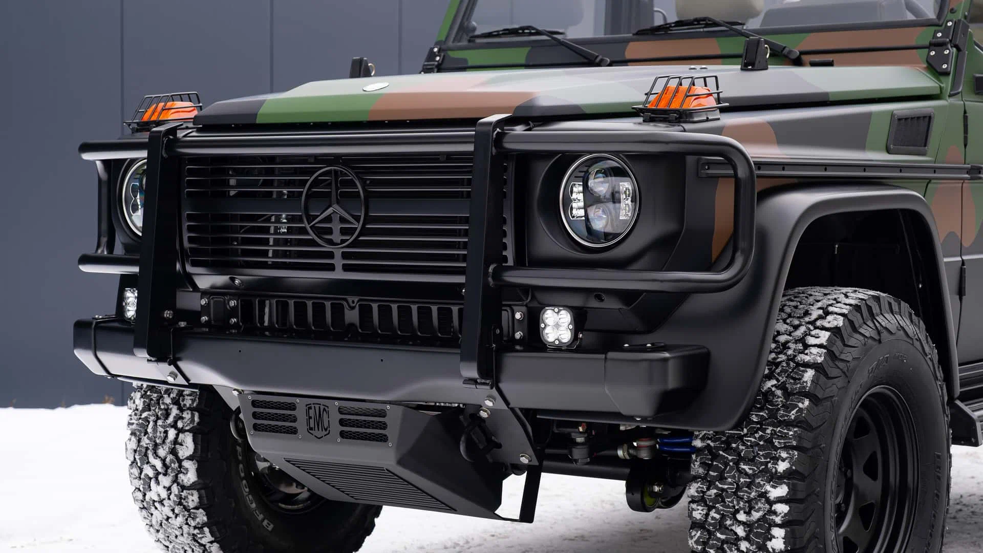Классический внедорожник Mercedes-Benz G-класса в начале 90-х годов выпускался в спецверсии для европейских вооружённых сил. Она комплектовалась скромным 90-сильным дизельным движком и не могла похвастаться особым ездовым комфортом. Американские тюнеры из EMC решили сделать из вездехода роскошный и дорогой рестомод.