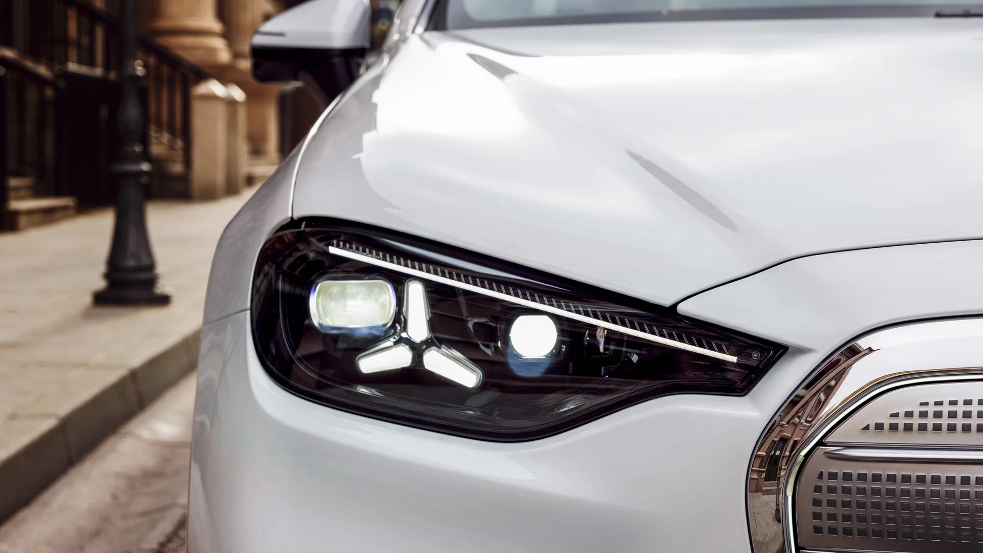Снаружи четырёхдверка похожа на другие новинки концерна, включая купе-кросс GLC. У неё решётка радиатора с иллюминацией, оптика с элементами в виде трёхконечных звёзд, аэродинамичный силуэт и дверные ручки заподлицо с кузовом. Длина – 4883 мм, а расстояние между осями – 2962 мм. Диаметр колёсных дисков варьируется от 18 до 20 дюймов, а минимальный объём багажника составляет 470 л.
