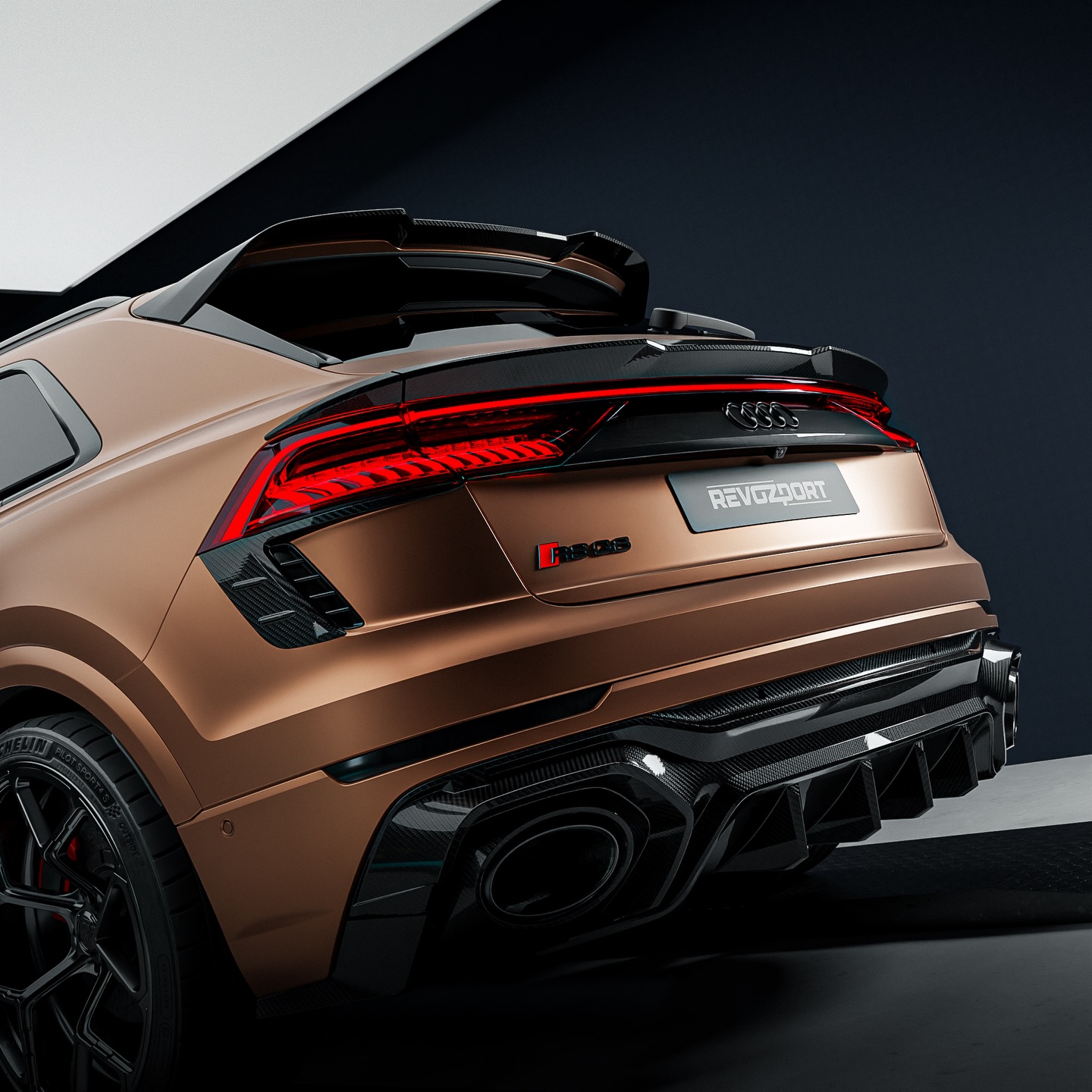 Давно не заявлявшее о себе ателье RevoZport внезапно анонсировало новинку: роскошный углепластиковый боди-кит для флагмана марки Audi – купеобразного кроссовера RS Q8.