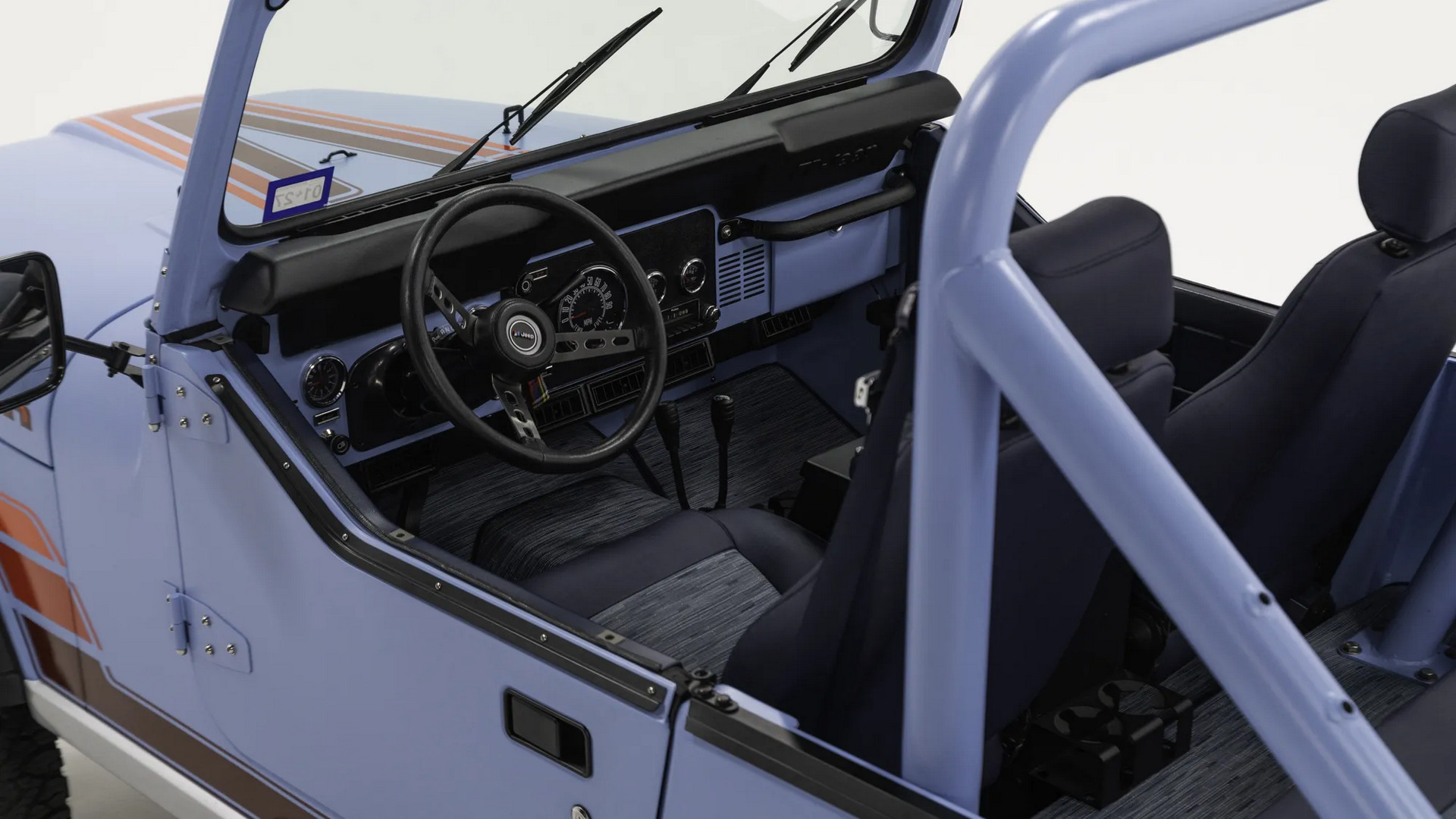 Салон оформлен консервативно, с аналоговыми шкалами приборов и трёхспицевым рулём в ретростиле, но современные «примочки» всё же есть. В частности, на борту работает климат-контроль Vintage Air и есть мощная аудиосистема с поддержкой Bluetooth.